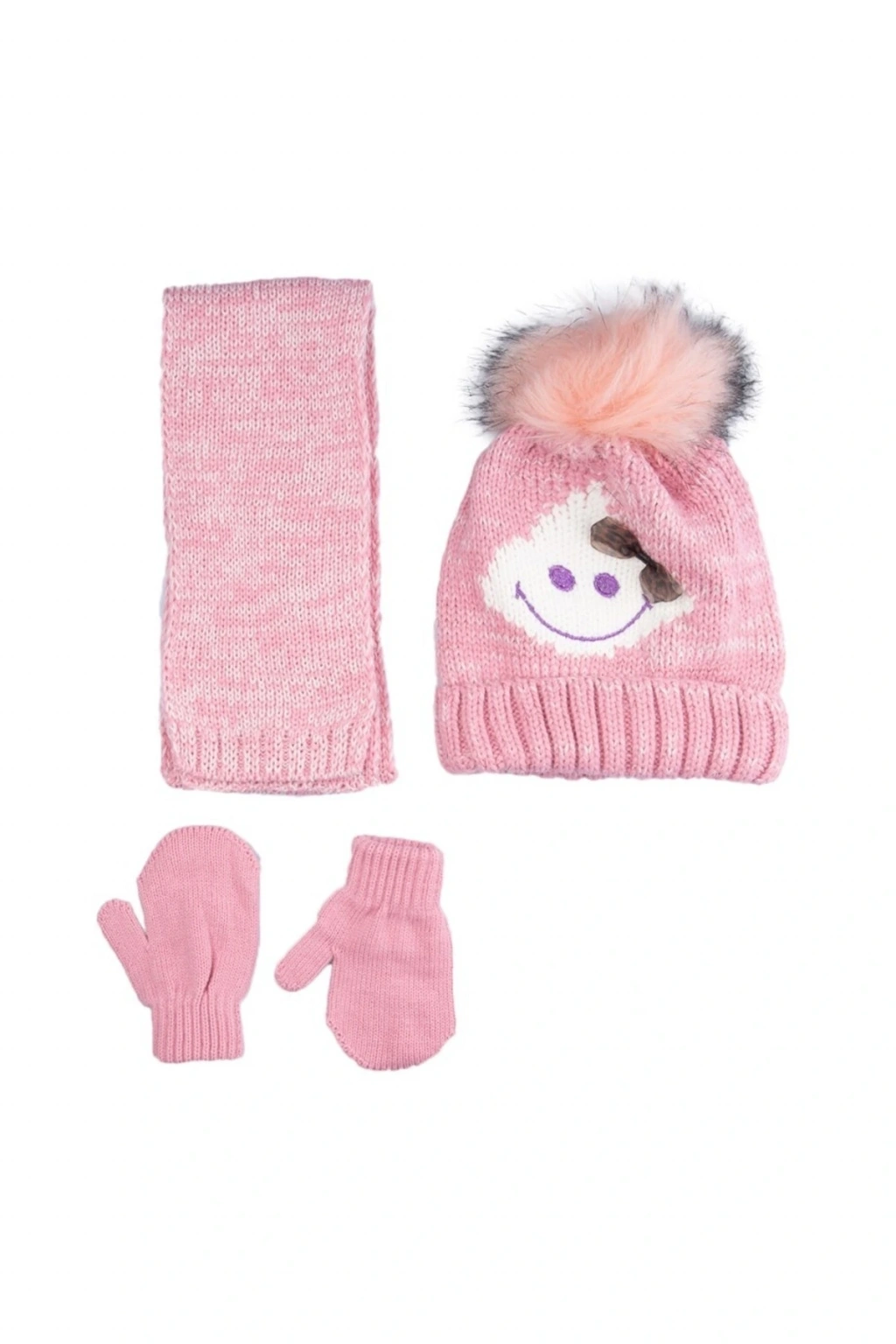 Kız Çocuk Triko Atkı Bere Eldiven Seti