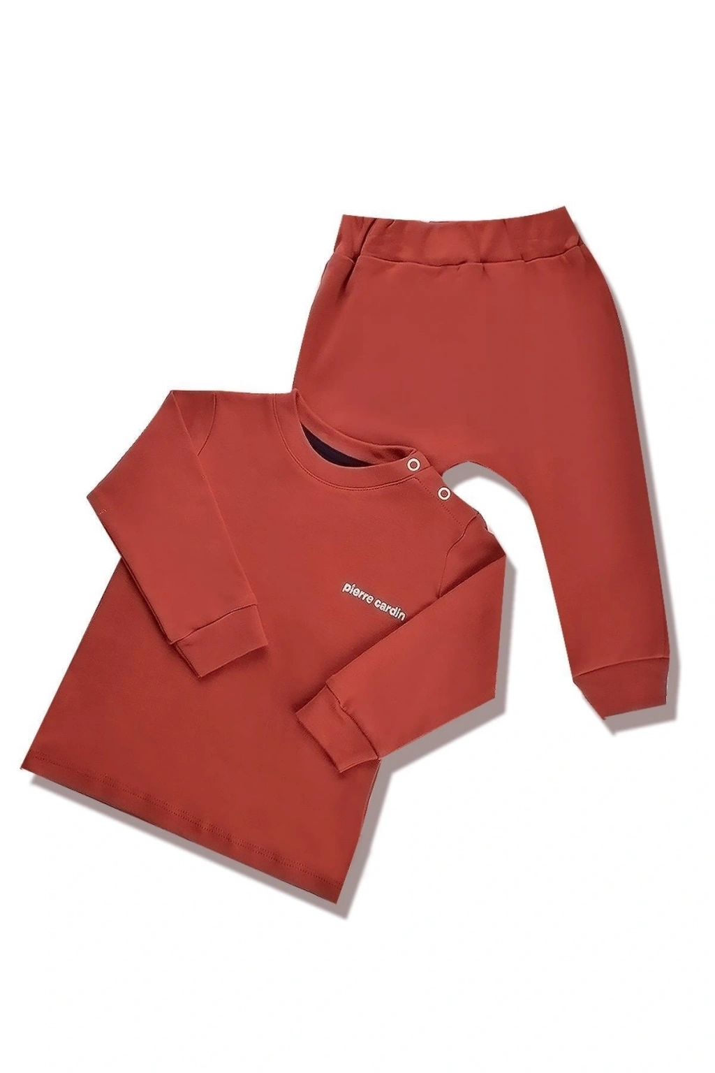 Kiremit rengiyle şık ve modern bir görünüm sunar, her ortamda dikkat çeker.; Uzun kollu tasarımı sayesinde bebeğinizin kollarını soğuktan korurken, aynı zamanda hareket özgürlüğünü kısıtlamaz.; Unisex koleksiyon parçası olarak tasarlanmıştır; hem kız hem erkek bebekler için uygundur.; Regular kalıp ile rahat bir kullanım sunar; bebeğinizin vücut hatlarına uyum sağlar.; Soyut deseniyle sade ve estetik bir görünüm kazandırır, zamansız parçalardan hoşlanan ebeveynler için idealdir.; Bisiklet yaka detayıyla rahat giyim imkanı sunarken, lastikli paça tasarımı hareket halindeyken bile yerinde kalmasını sağlar.;