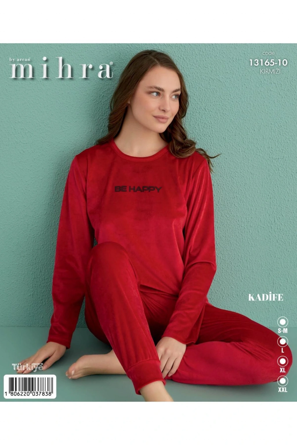 Mihra 13165-10 Kırmızı Bee Happy Paçası Lastikli Kadife Pijama Takım
