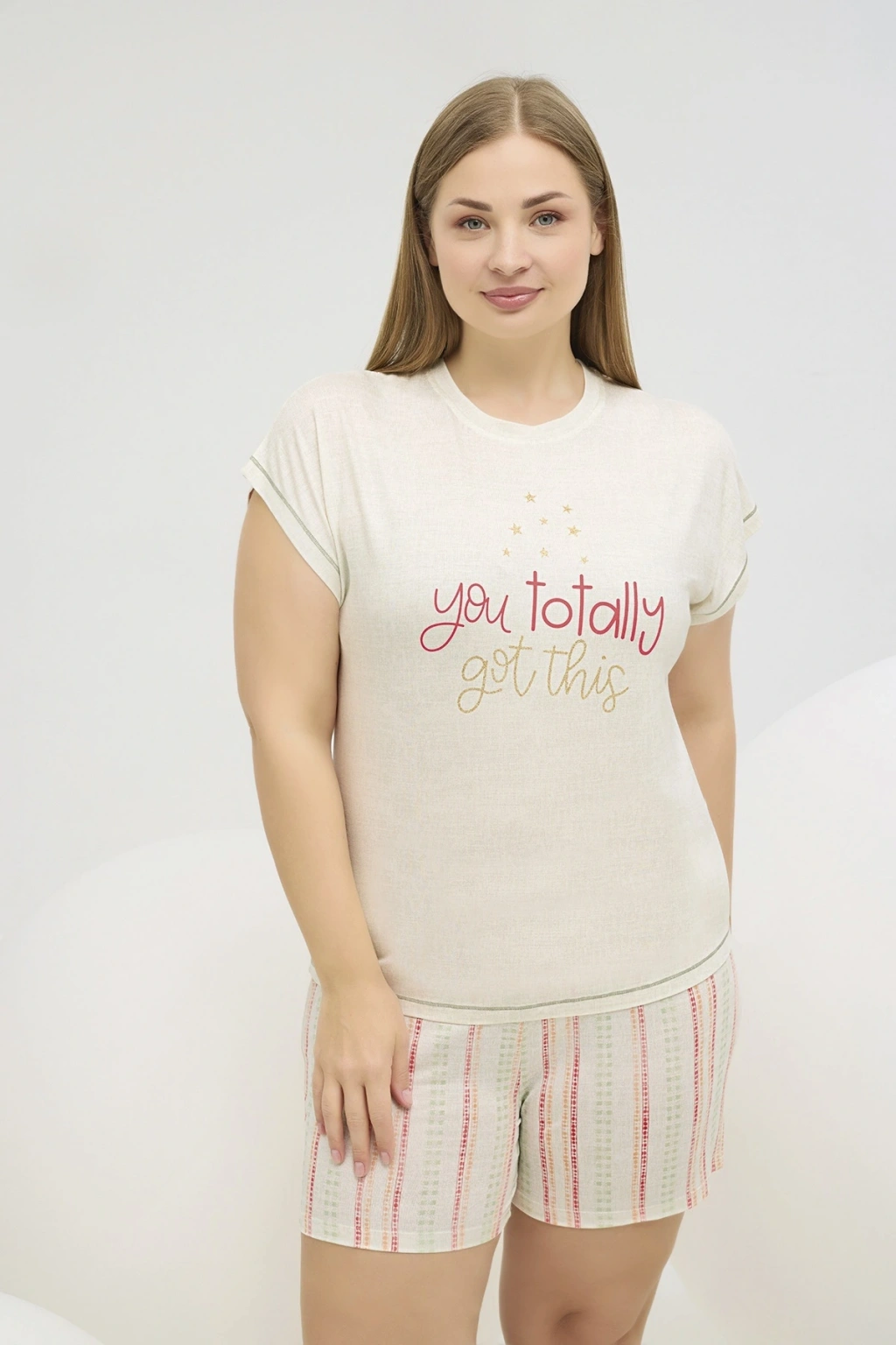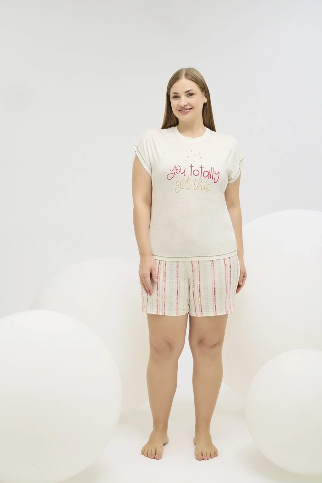 16632 KADIN BASKILI BIG SIZE ŞORT TAKIM