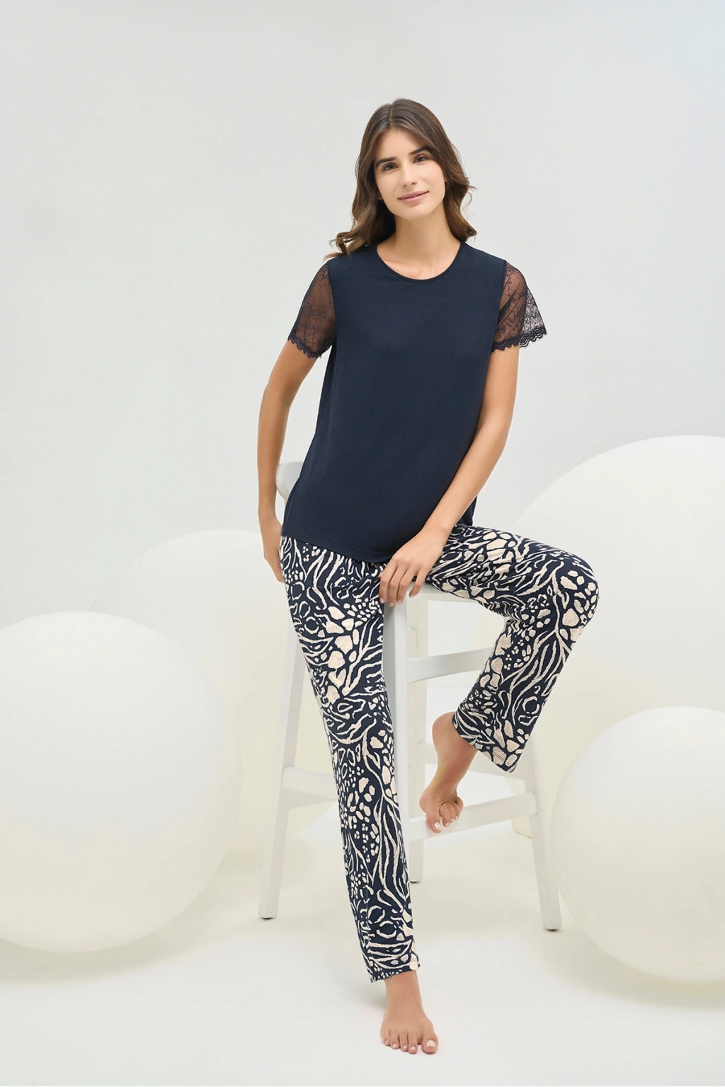 Kadın Lacivert Gömlek Pijama Takım