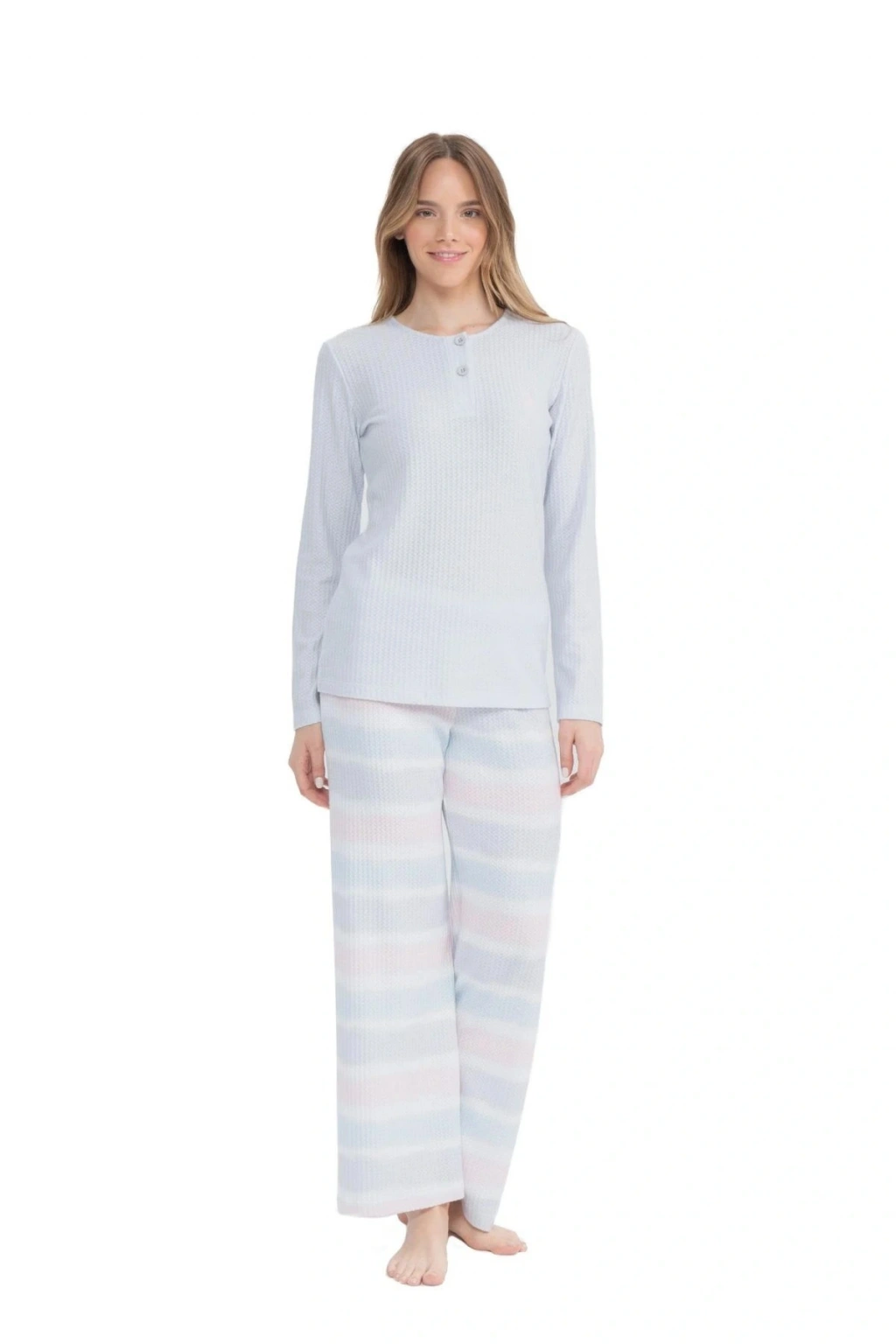 17096 Kadın Gri Uzun Kollu Patlı Pijama Takım