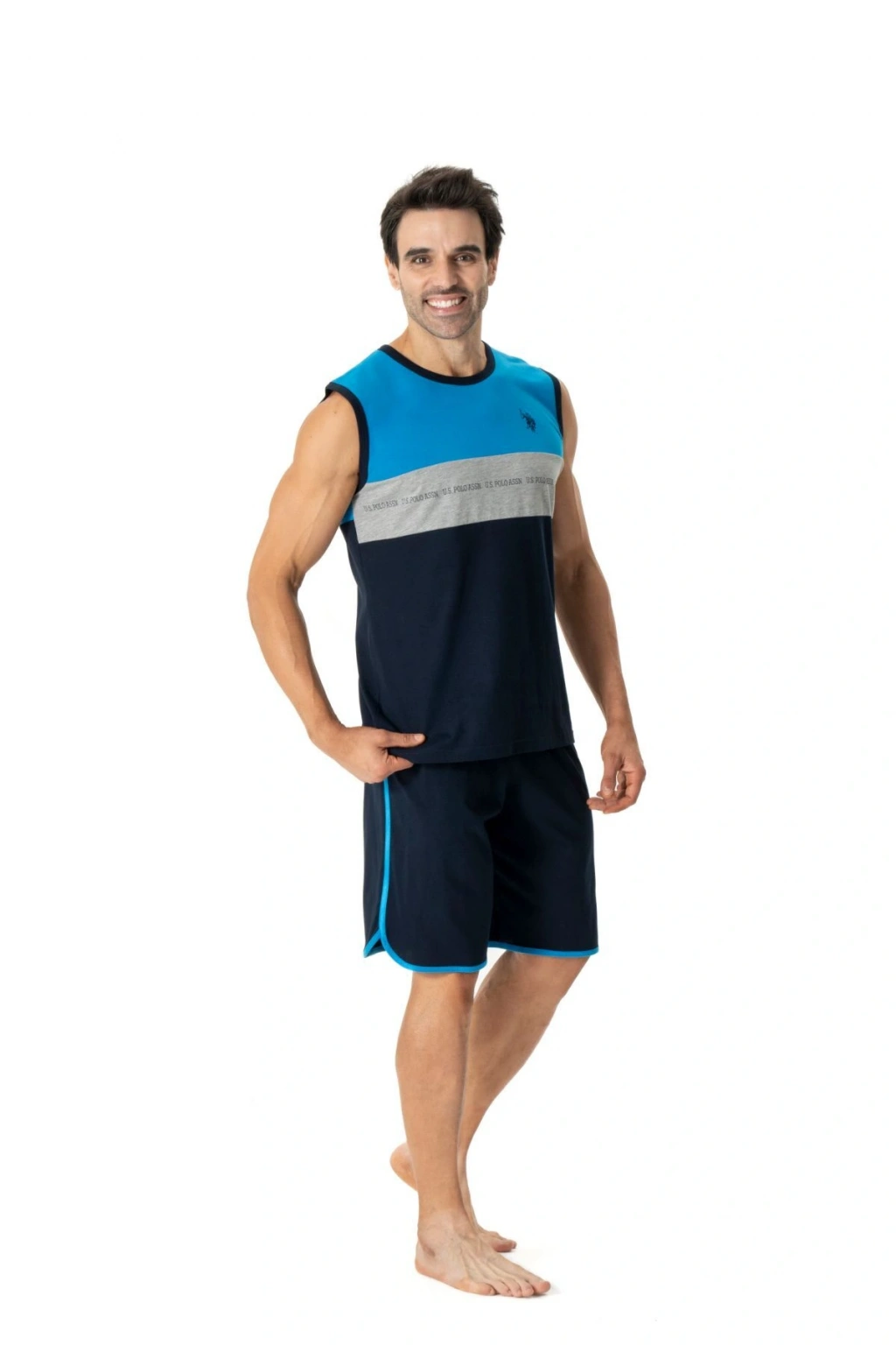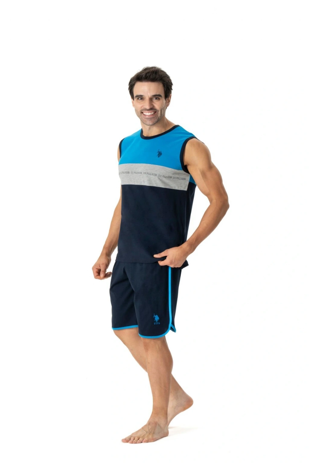 U; s Polo Assn; 18776 Erkek Kalın Askılı Şortlu Pijama Takımı; Mavi Birinci sınıf pamuklu kumaştan üretilen pijama takımımız ile günün yorgunluğunu en iyi şekilde üzerinden atabilmek, bir sonraki güne stressiz, dinlenmiş ve enerjik uyanmak mümkün; Yumuşacık dokusuyla üzerinizdeyken neredeyse hissetmeyeceğiniz kaliteli kumaştan yapıldığından deliksiz bir uykunun tadını çıkarabilirsiniz; Erkek Mankenimiz M (48; 50) beden Olup, Ölçüleri: Boy – 1; 88 Göğüs – 100 Bel – 80 Kalça – 99 Ürün İçeriği: %100 Pamuk;