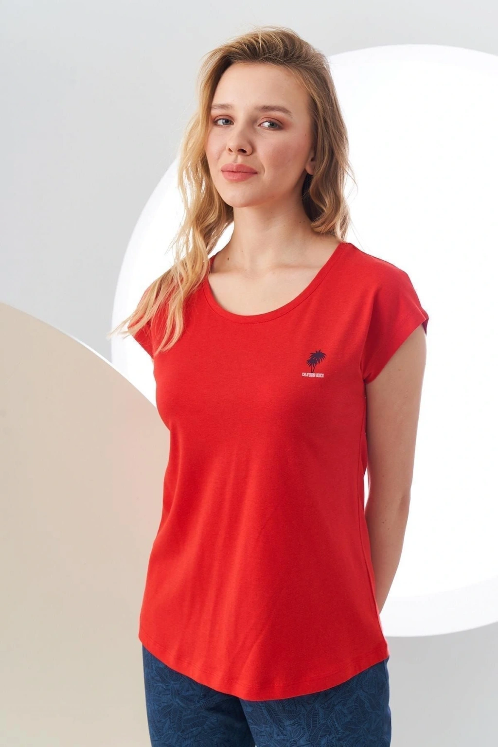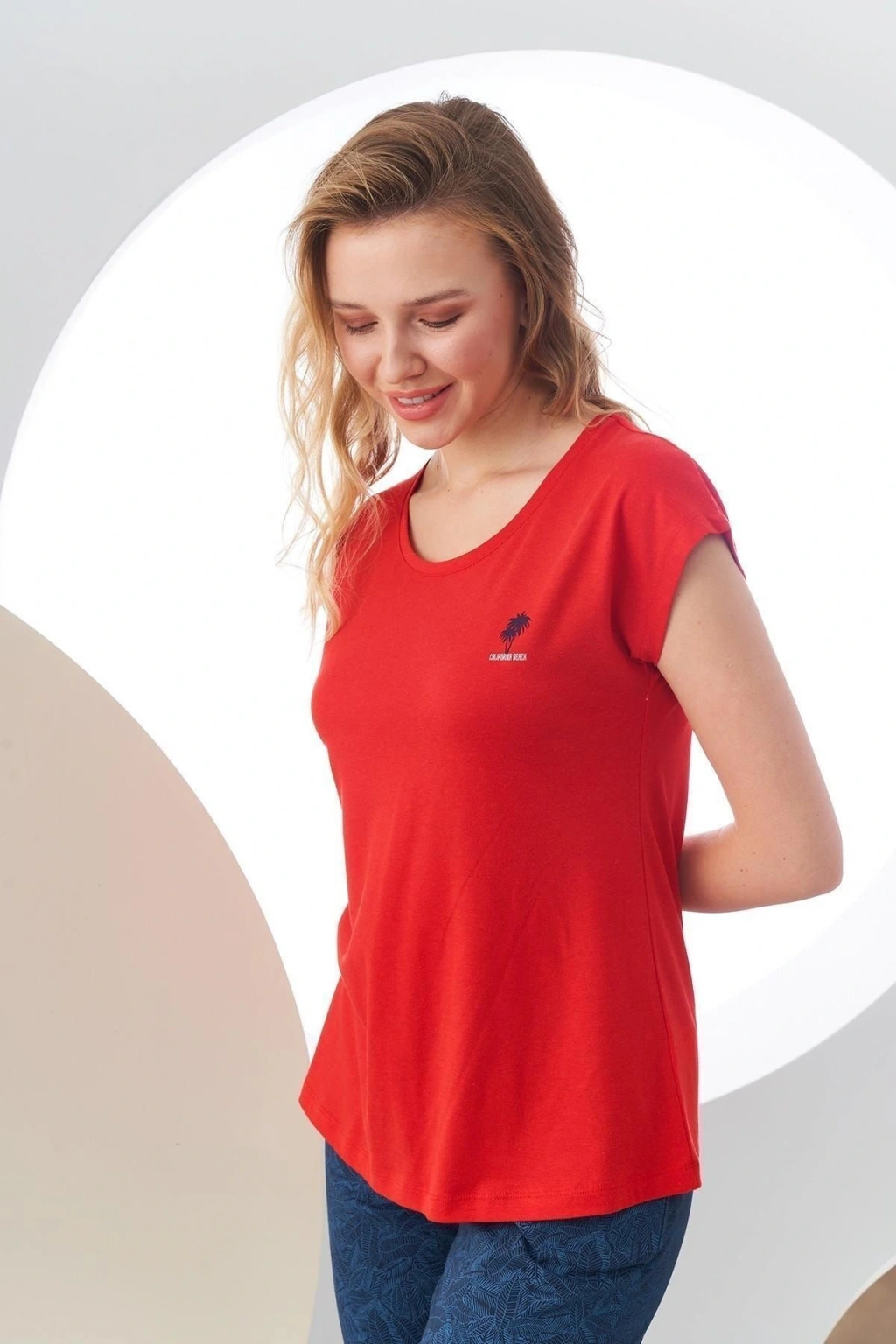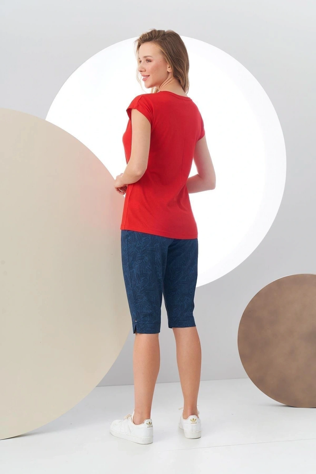 Desenli tasarımıyla göz alıcı bir görünüm sunarken, aynı zamanda zamansız parçalardan hoşlananlar için ideal bir seçim.; Normal bel kesimi sayesinde gün boyu rahatlık sağlayan ve vücut hatlarınızı nazikçe sararak konforlu bir kullanım sunuyor.; Kısa kol ve kapri kesimi ile yaz ayları için idealdir; serinlik hissi verirken aynı zamanda hareket özgürlüğünüzden ödün vermezsiniz.; Homewear koleksiyonunun vazgeçilmez parçası olarak tasarlanmıştır; evdeki rahatlığınız düşünülerek üretilmiştir.;