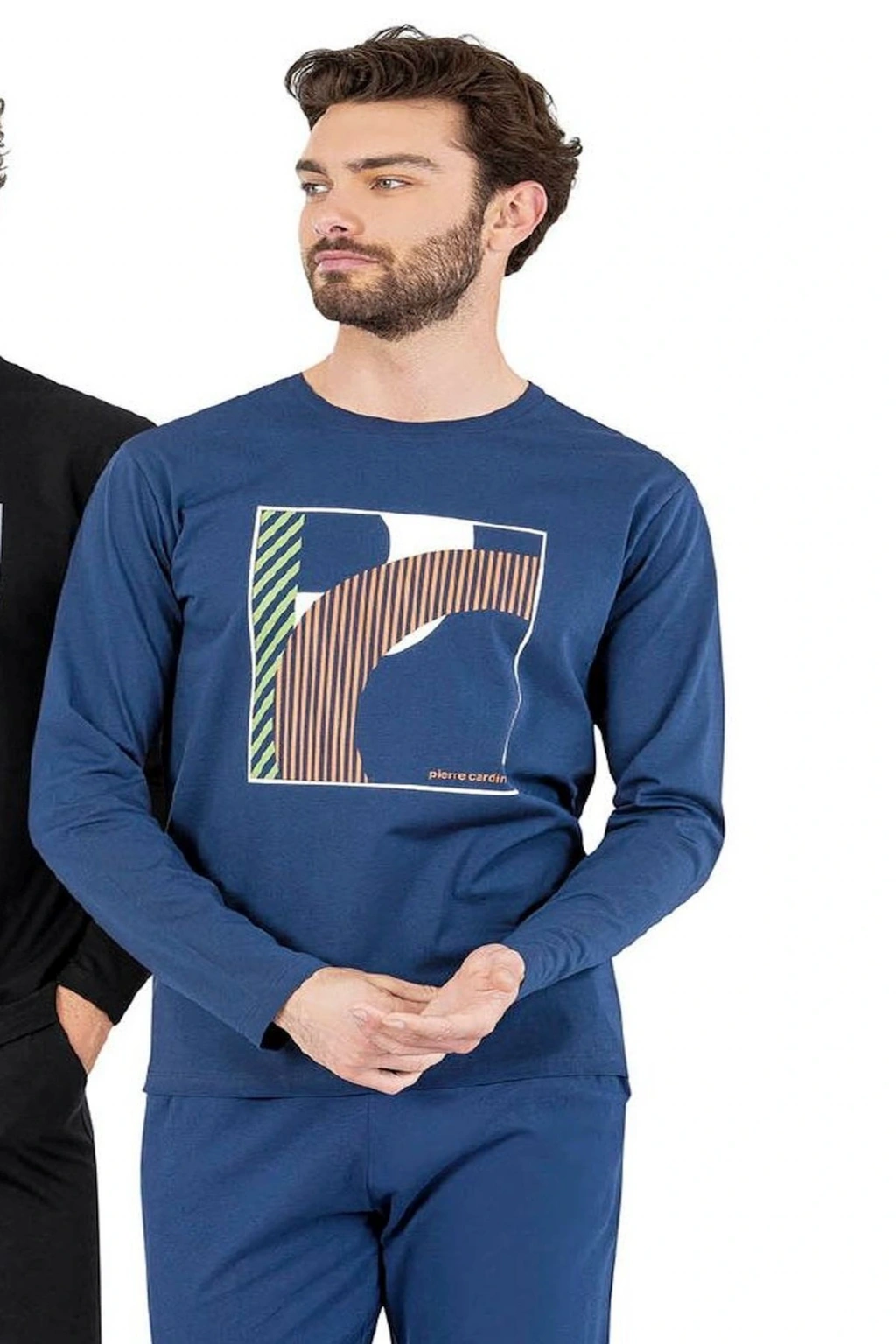 Pierre Cardin 6060 Erkek Lacivert Uzun Kollu Yuvarlak Yakalı Pijama Takım