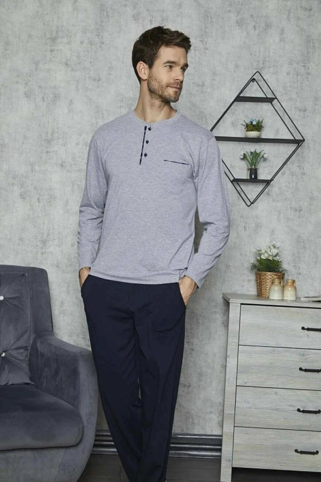 7421 Erkek Battal Pijama Takım Gri