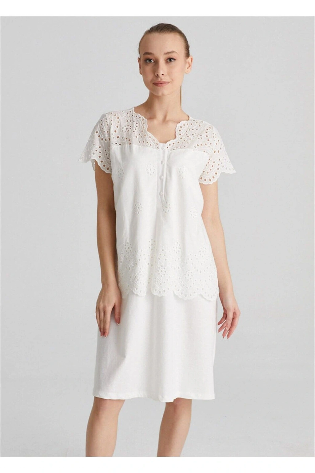 Kadın Ekru Lohusa Pamuklu Tesettür Gecelik 38110
