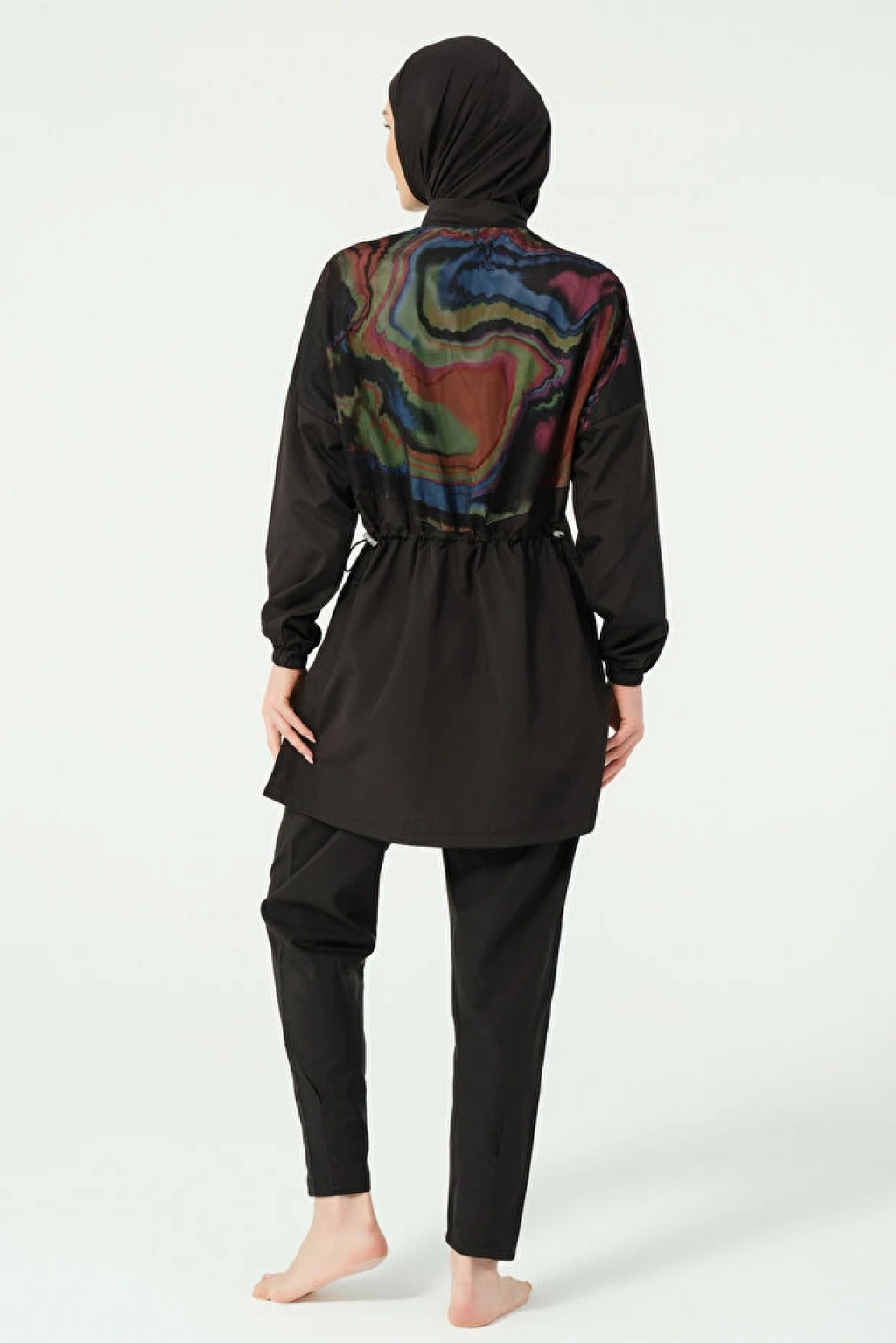 Siyah'In asil duruşunu, enerji dolu turuncu detaylarla canlandıran bu uzun kesim yüzücü elbisesi, plaj stilinize modern ve sportif bir hava katıyor. Hem tam kapanma konforunu yaşayın hem de trend görünümünüzle fark yaratın.