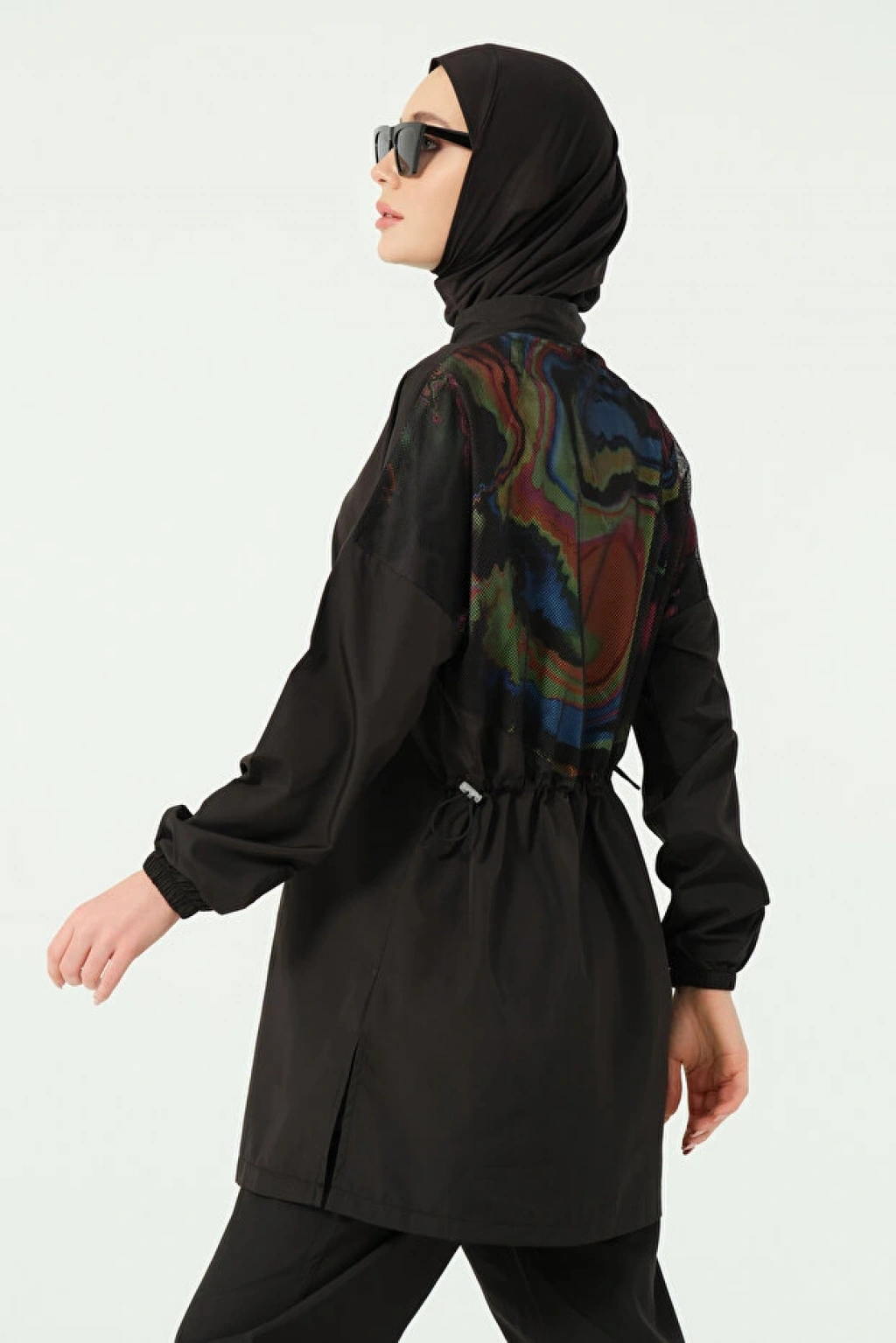 Bel Büzgüsü: Bel kısmındaki gizli büzgü (stoperli bağcık) detayı, tuniği isteğe göre ayarlama ve vücuda oturtma imkanı sunar.