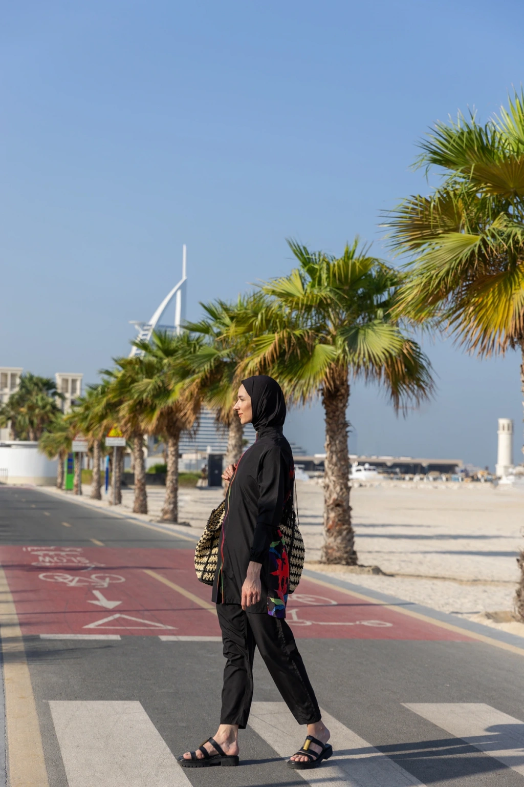 Su Desenli Pareolu 6 Parça Tesettür Mayo DLX-24605