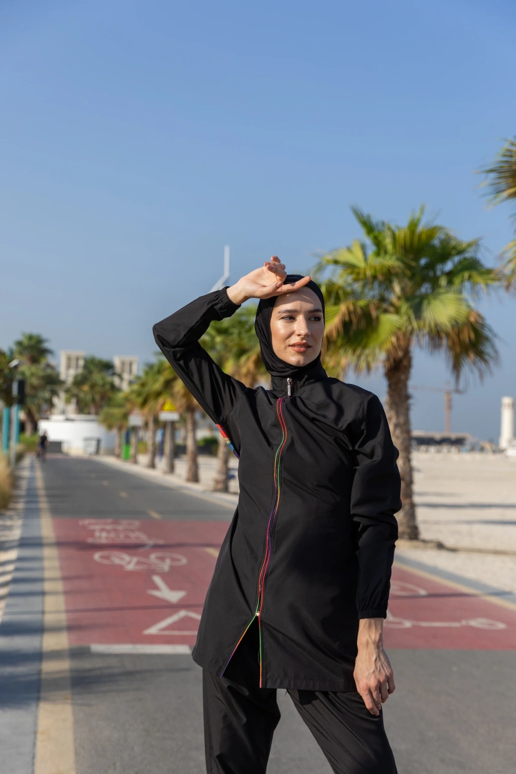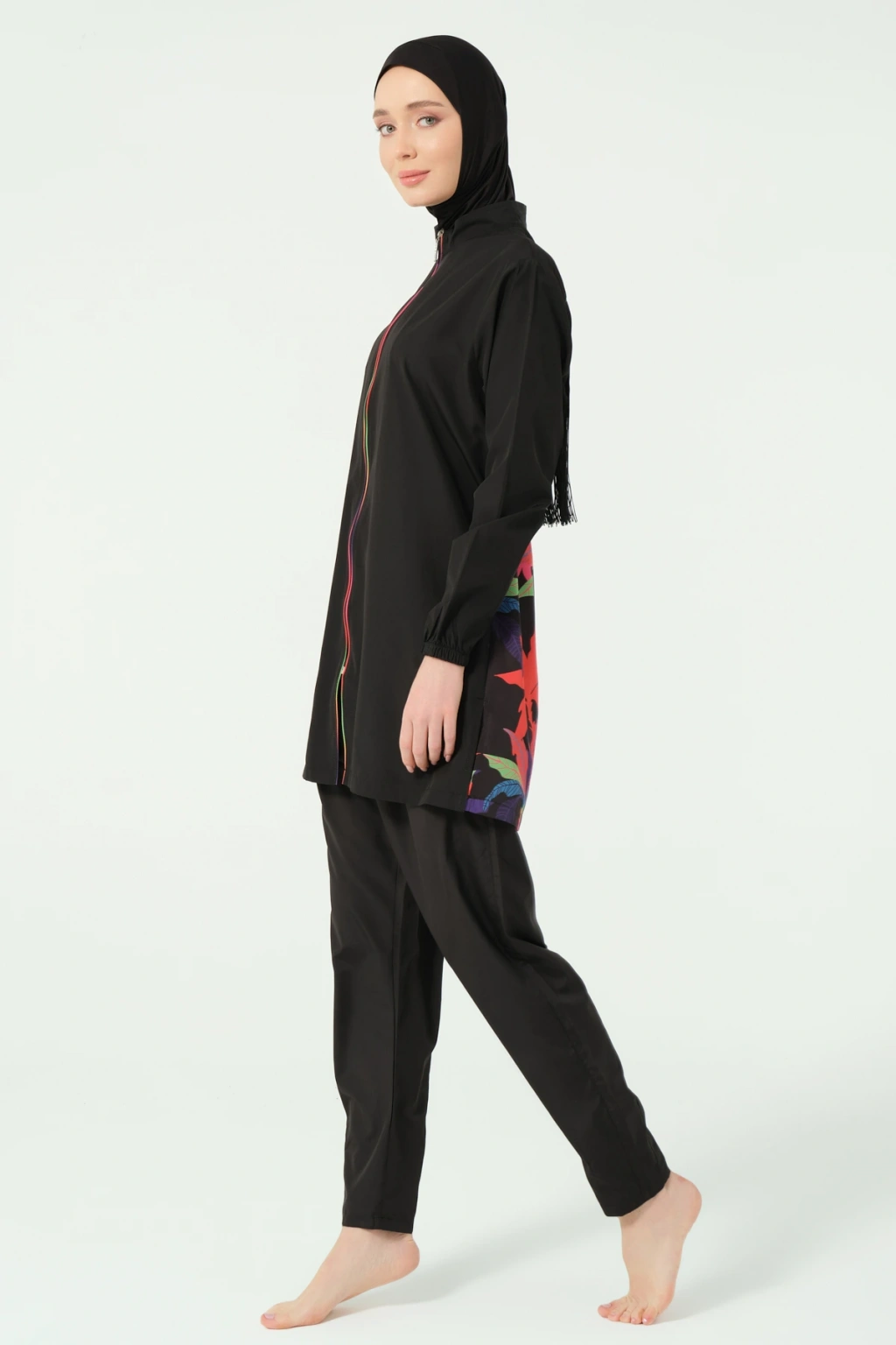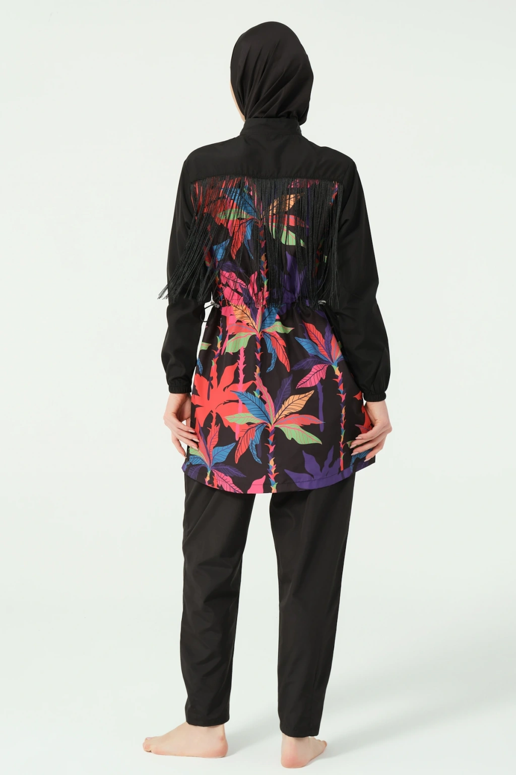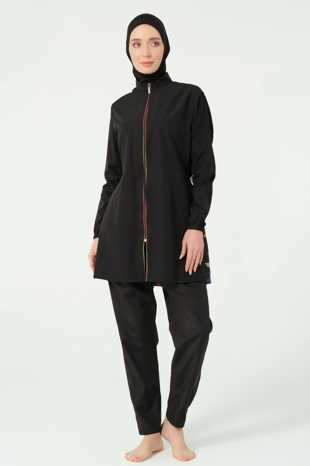 Spor Parmak Geçirmeli Uzun Tesettür Mayo DLX-24505