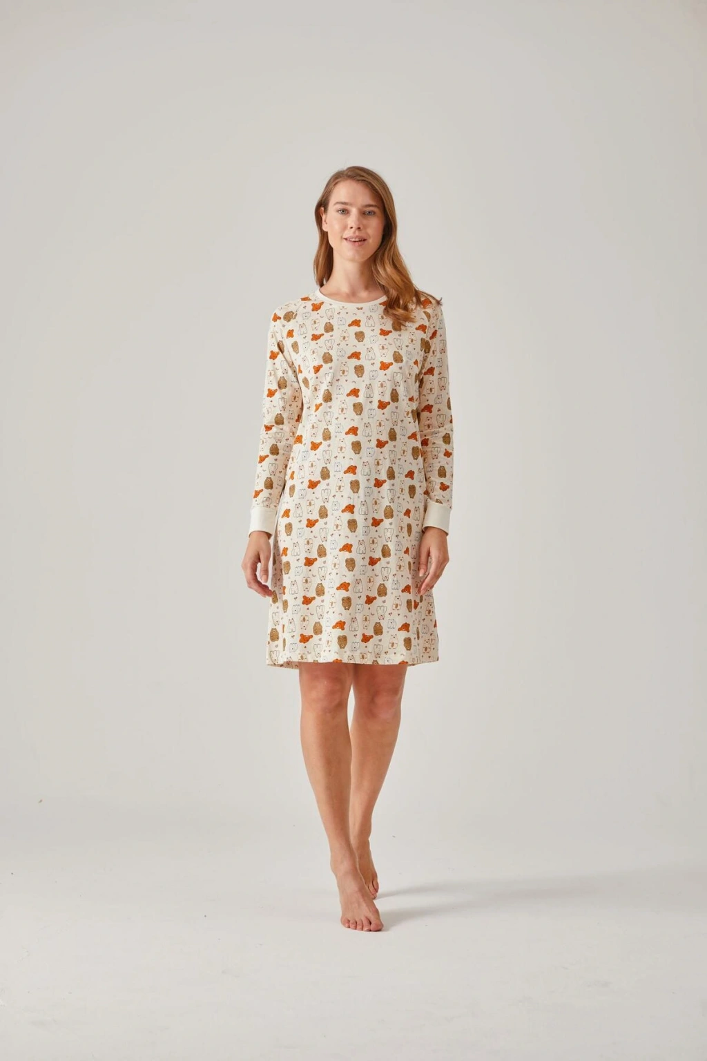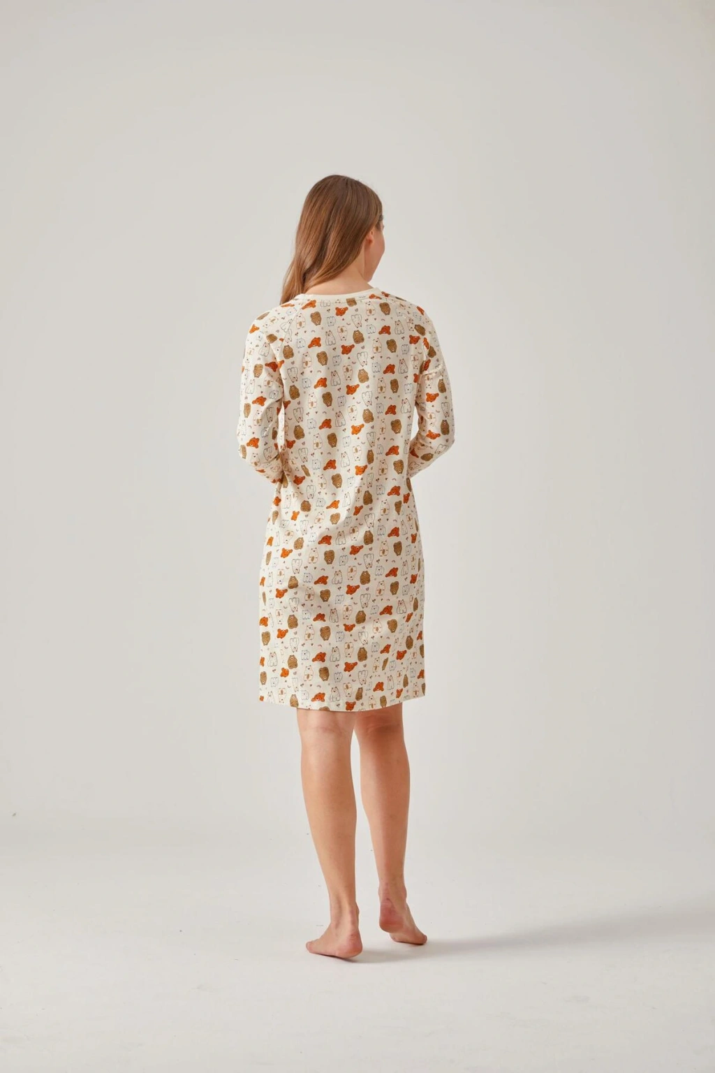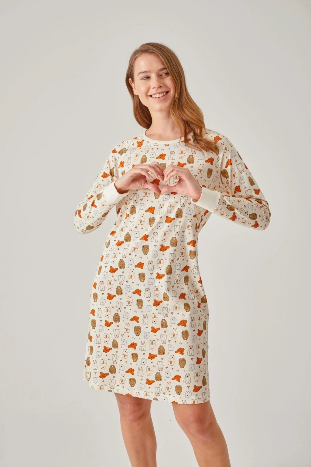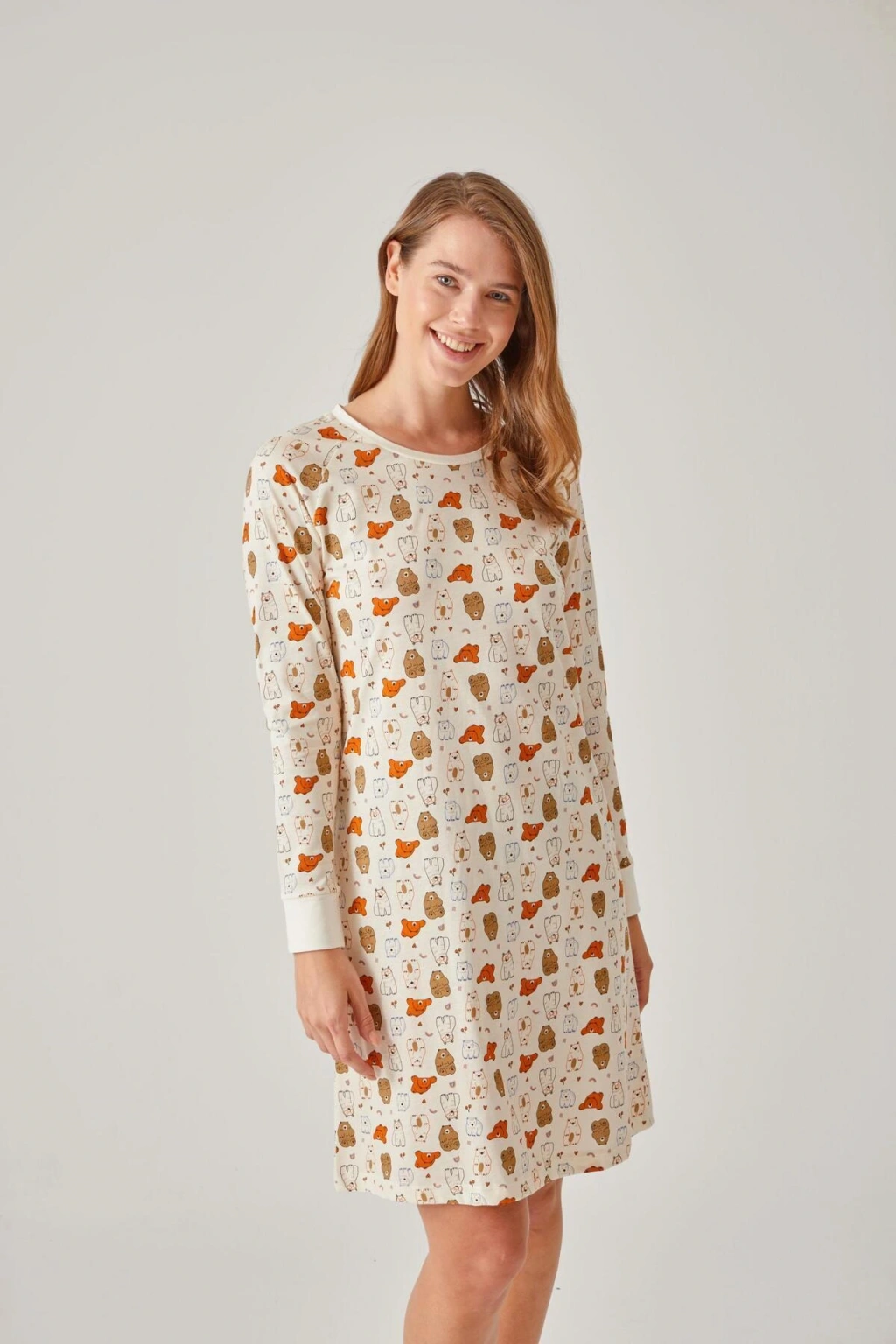 Ayıcık Desen Modal Pamuk Kadın Gecelik