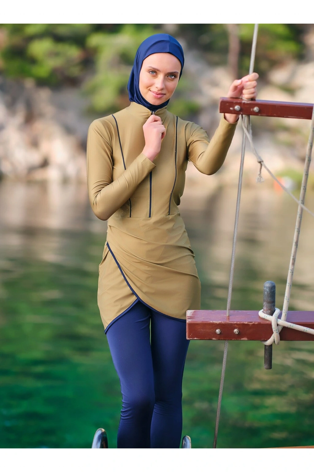 Biye Detaylı Anvelop Etekli Tesettür Mayo Zarif ve konforlu bu tesettür mayo, suyun içinde mükemmel uyum ve hareket özgürlüğü sunan esnek likralı kumaş ile tasarlanmıştır. ; Canlı renkleri ile her yaş ve bedene uygun bir görünüm sağlar. ; Tanım Su itici . ; Suyu iten apreli likra kumaş. ; Üst uzun kollu. ; Kıl biye süslemeli. ; Anvelop etek detaylı. ; Klasik Tayt. ; Eşarp ve bone. ; Tek parça iç çamaşır. ; Paket İçeriği Üst, Tayt, Eşarp, Bone, Tek parça iç çamaşırı olmak üzere 5 parçadan oluşmaktadır. ; Hızlı kuruma, kolay yüzme olanağı sağlar. ; Kumaş İçeriği %95 Poliester, %5 Elastan, Su itici apre uygulanmıştır.;