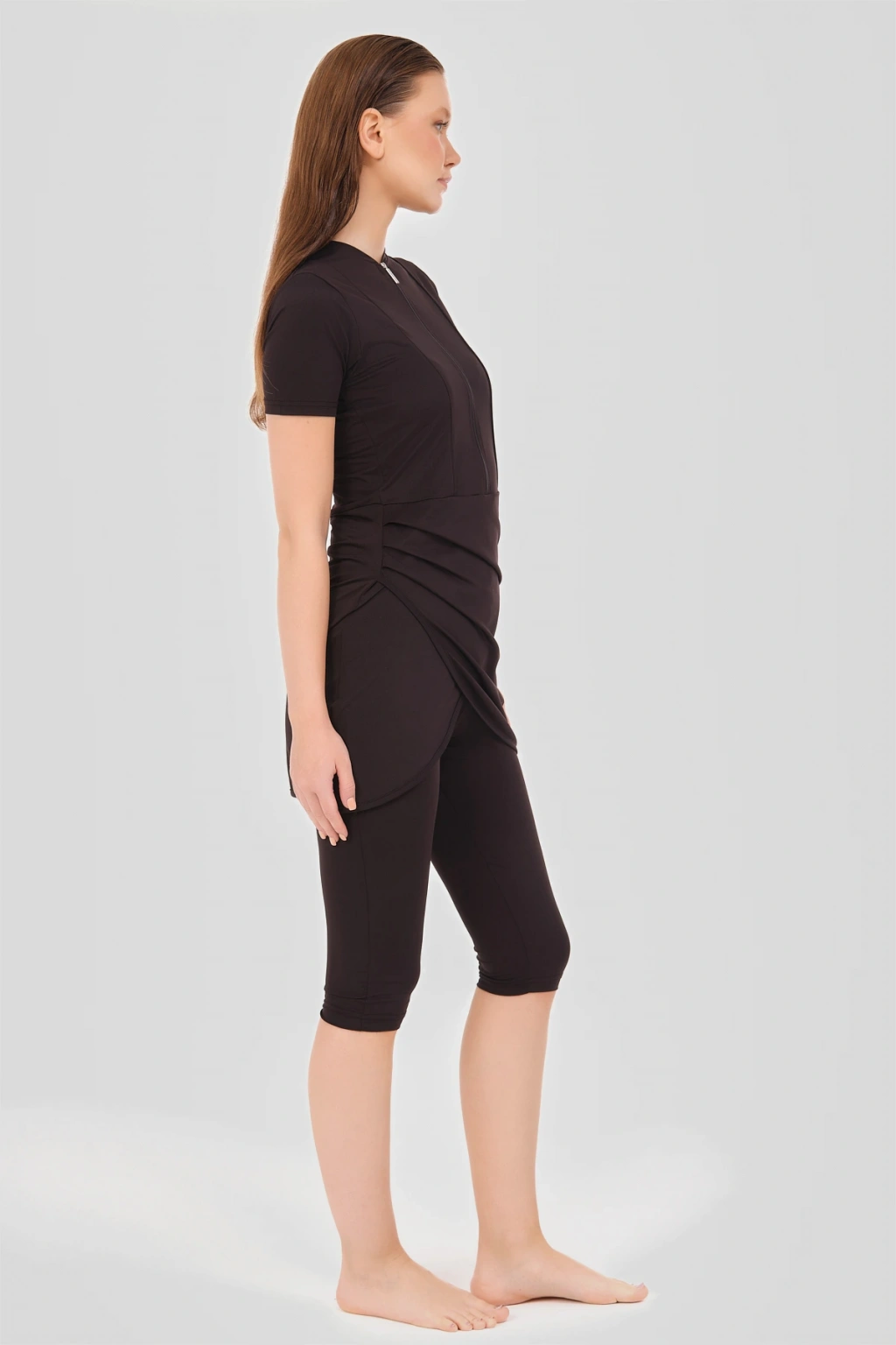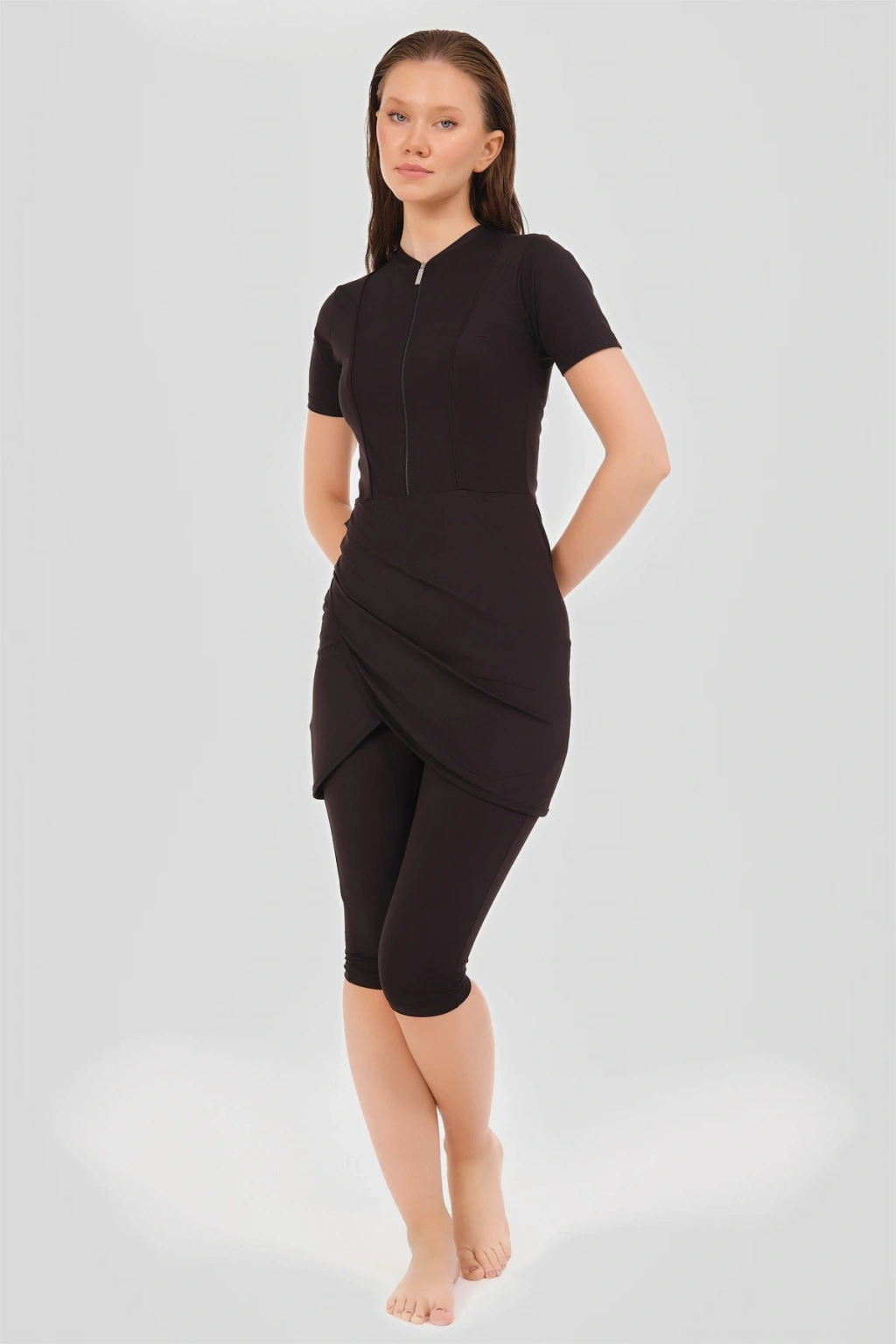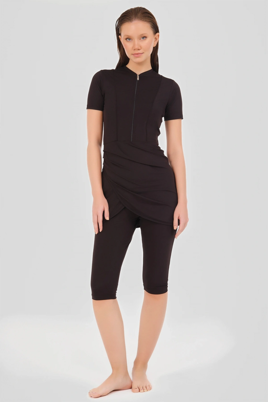 Biyeli Anvelop Etekli Yarım Kol Yarı Kapalı Mayo Zarif ve konforlu bu yarı kapalı mayo, suyun içinde mükemmel uyum ve hareket özgürlüğü sunan esnek likralı kumaş ile tasarlanmıştır. ; Canlı renkler ile her yaş ve bedene uygun bir görünüm sağlar. ; Tanım Su itici . ; Suyu iten apreli likra kumaş. ; Üst kısa kollu. ; Kıl biye süslemeli. ; Fermuarlı bisiklet yaka. ; Anvelop etek detaylı. ; Kısa tayt. ; Bone. ; Tek parça iç çamaşır. ; Paket İçeriği Üst, Tayt, Bone, Tek parça iç çamaşırı olmak üzere 4 parçadan oluşmaktadır. ; Hızlı kuruma, kolay yüzme olanağı sağlar. ; Kumaş İçeriği %95 Poliester, %5 Elastan, Su itici apre uygulanmıştır.;