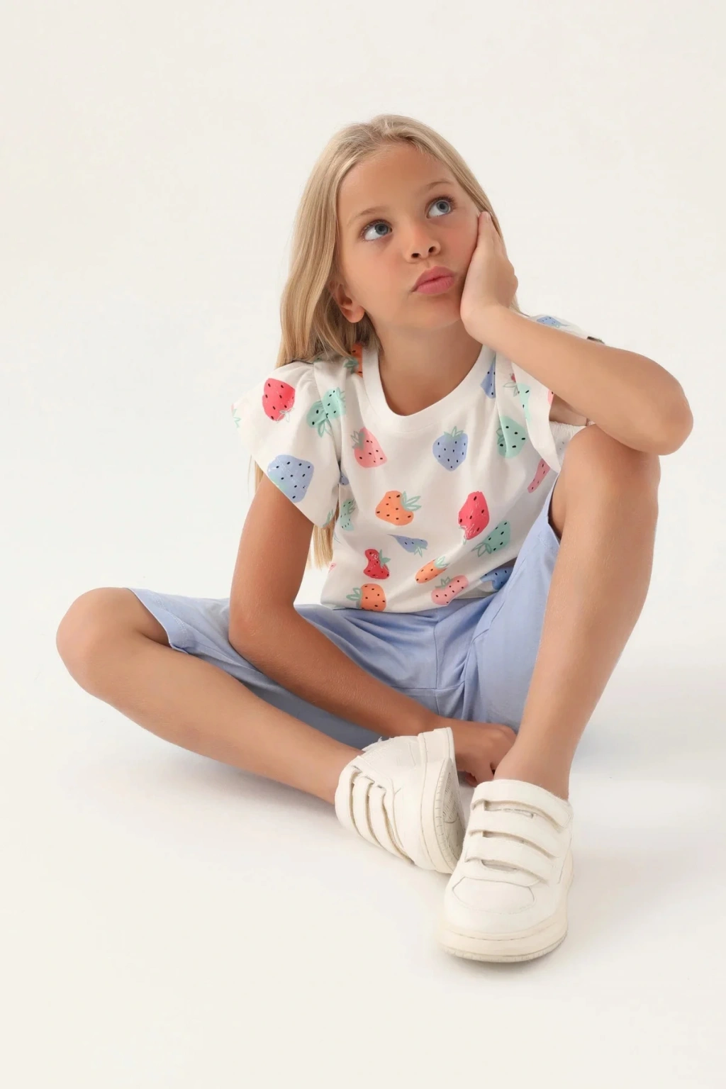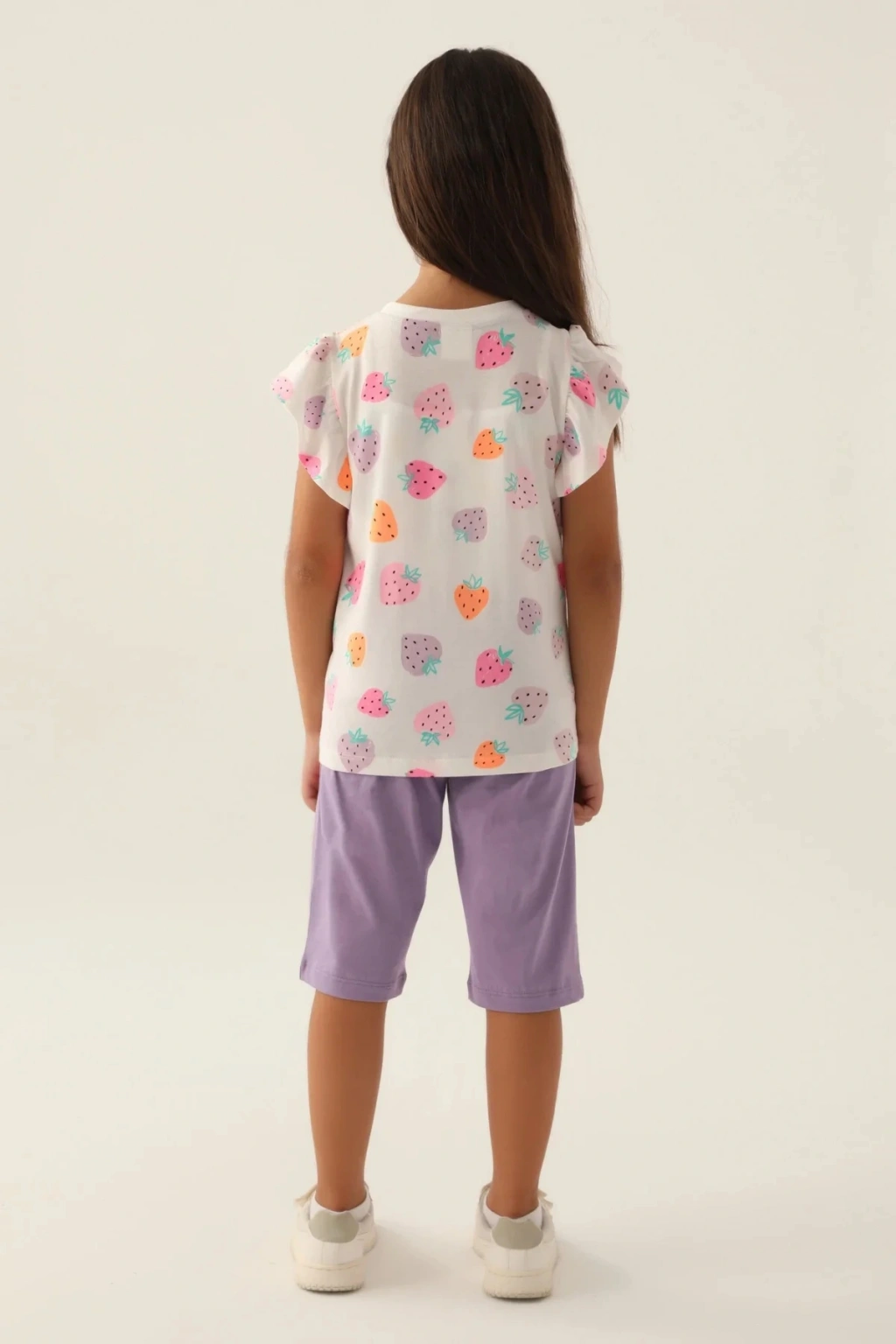 Çilek Desenli, Mor, Kız Çocuk, Kapri Takım