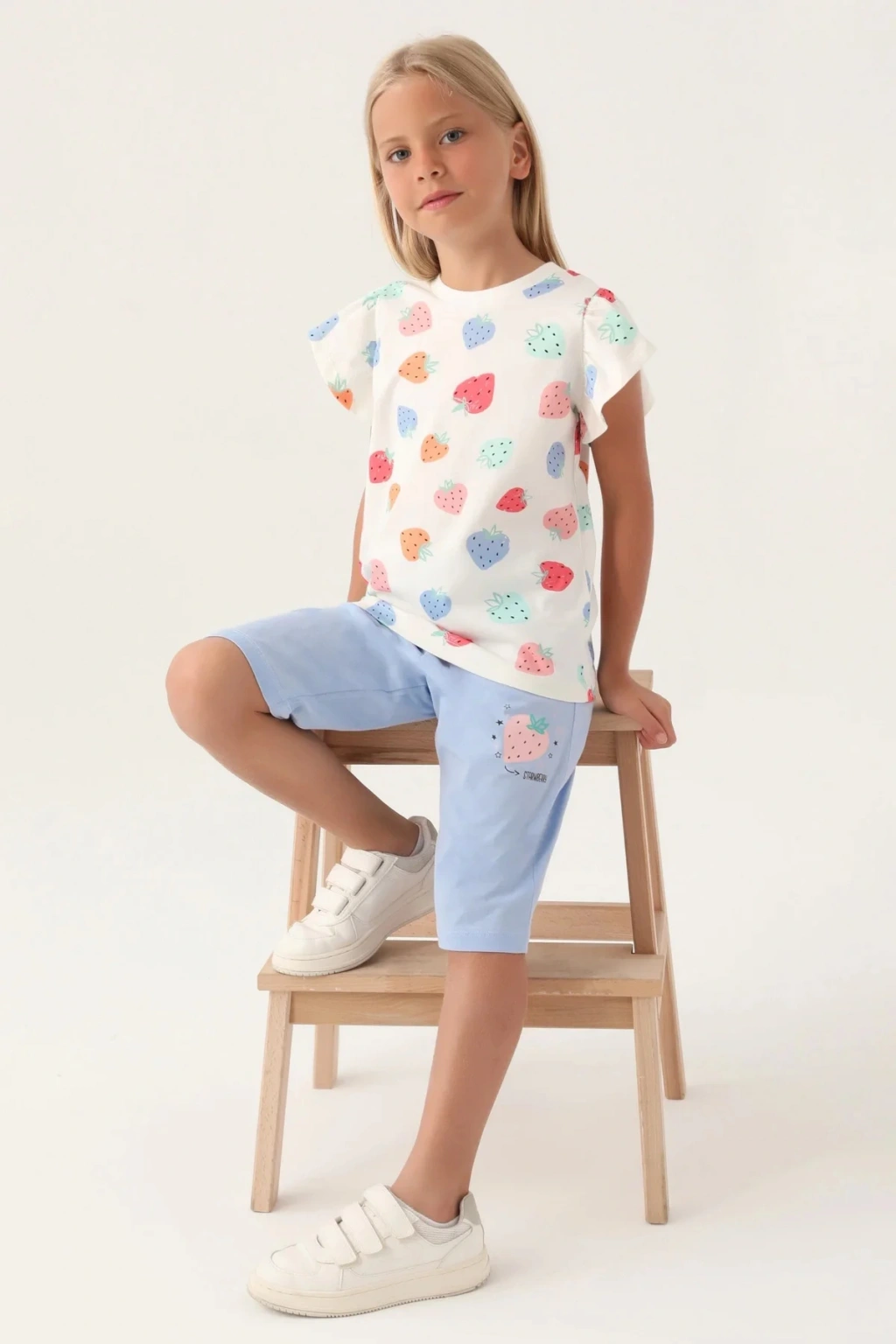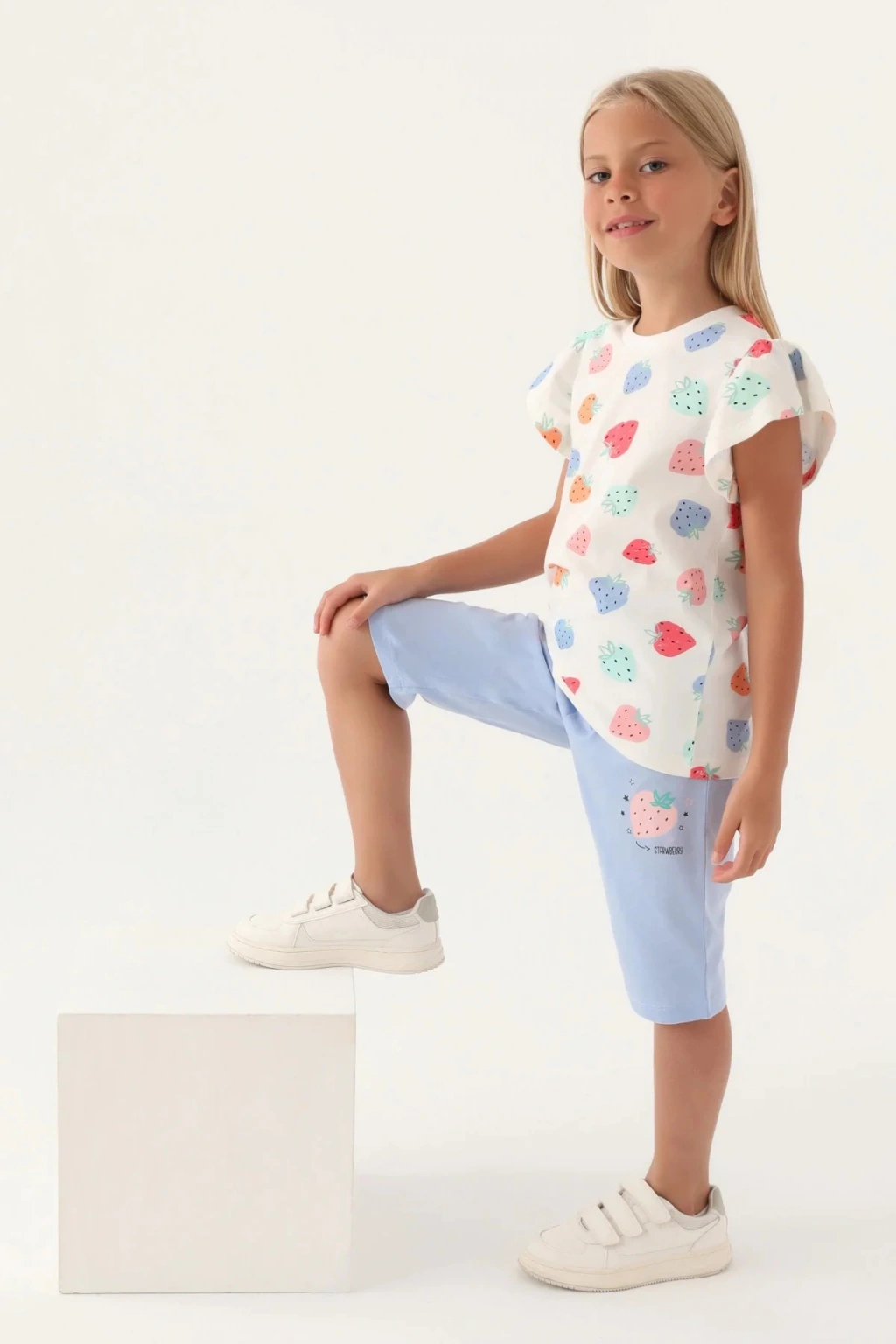Kız Çocuk Kapri Takım - Krem Mavi