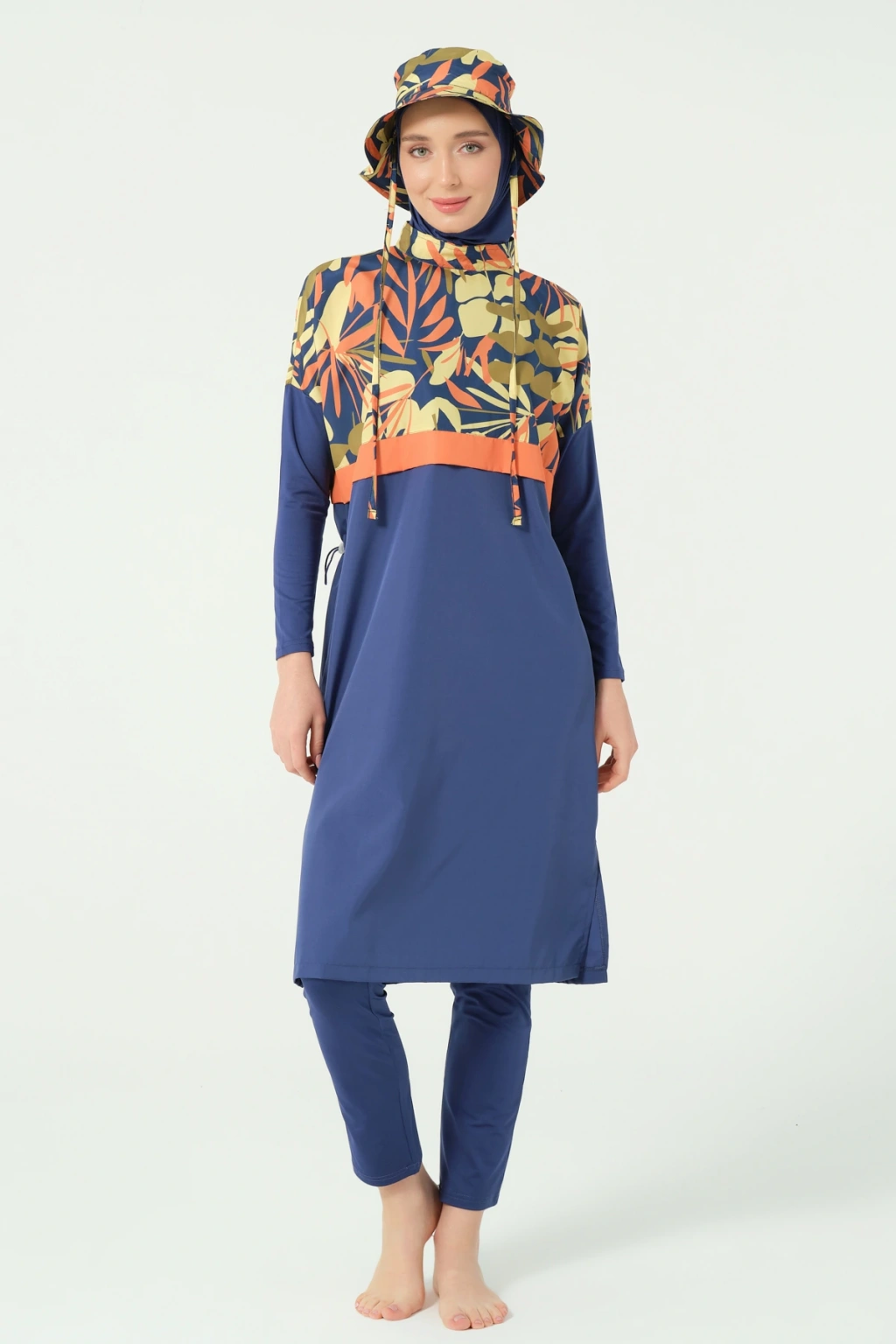 TR: Üst, Tayt, Eşarp, Şapka, Tek parça iç çamaşırı olmak üzere 5 parçadan oluşmaktadır. Hızlı kuruma, kolay yüzme olanağı sağlar.