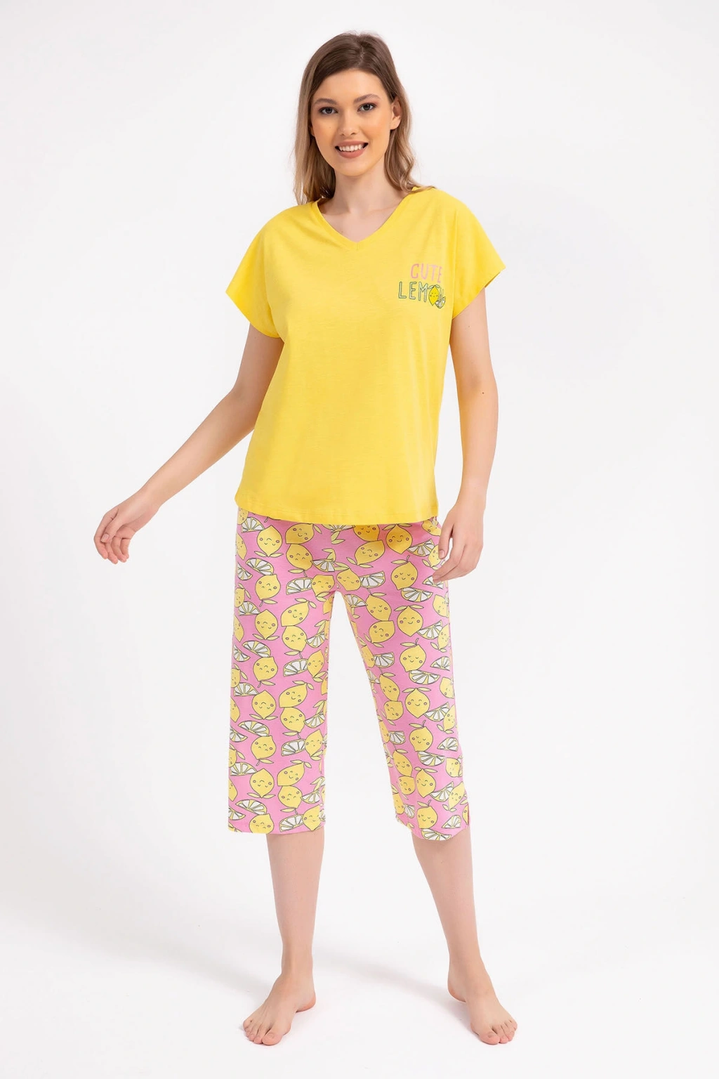 Rolypoly Feeling Tropical Sarı Kadın Uzun Kol Şort Takım