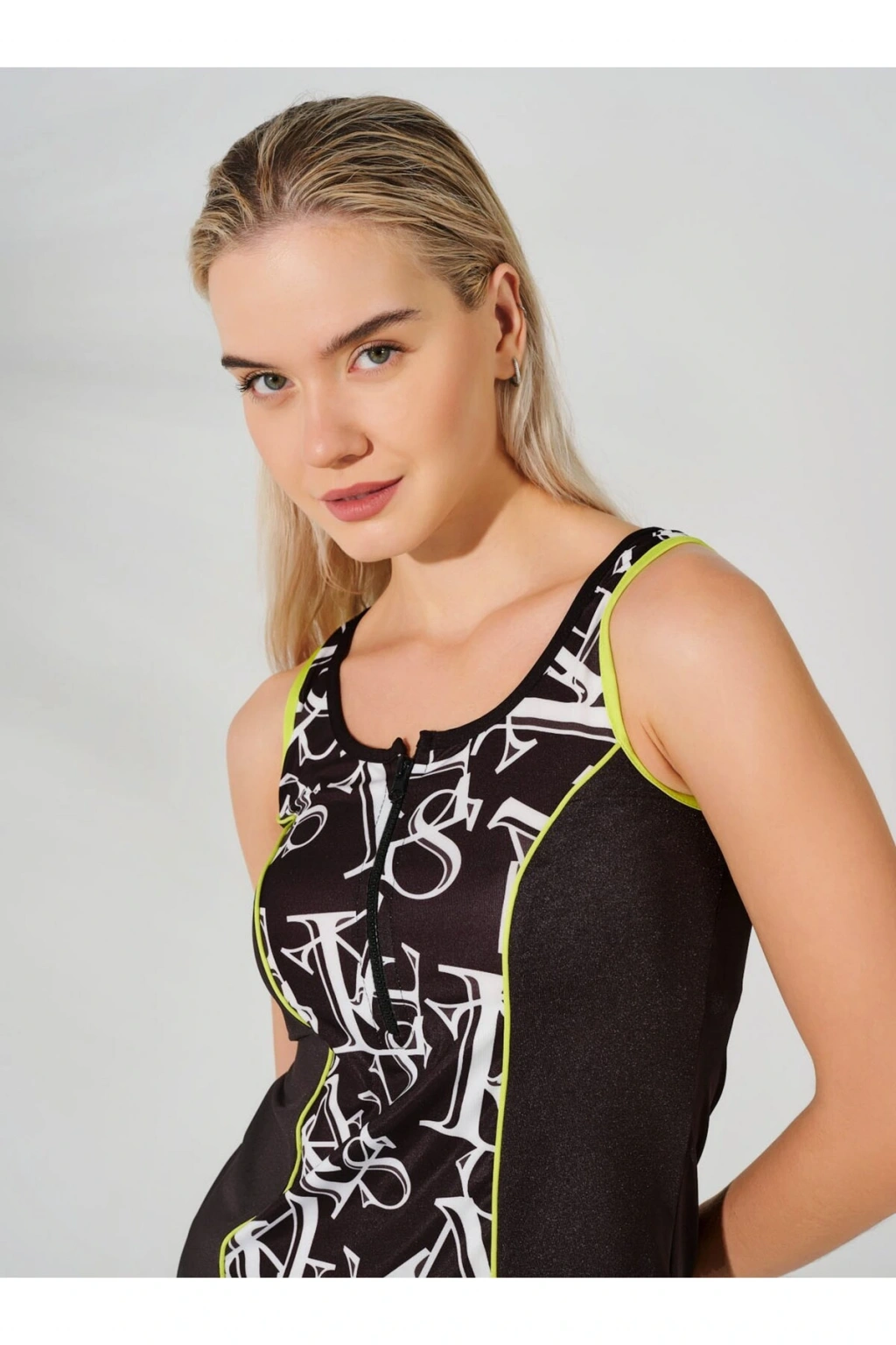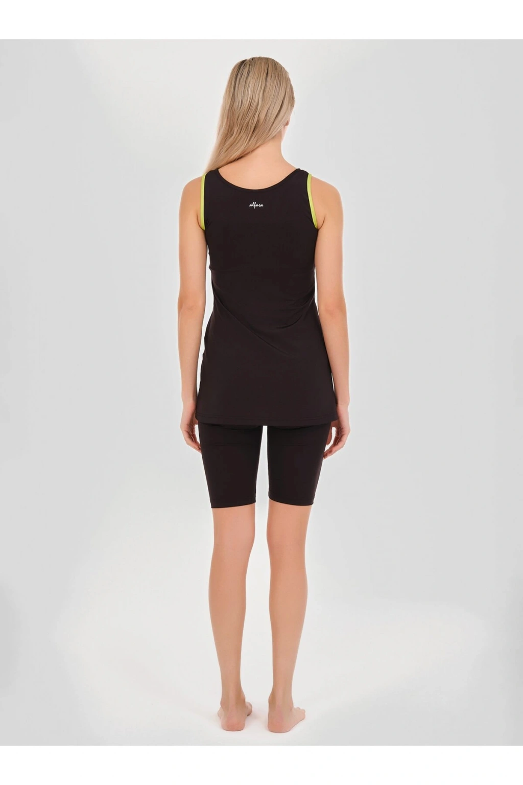 %95 Poliester, %5 Elastan, Su itici apre uygulanmıştır.; Üst, Tayt, Bone, Tek parça iç çamaşırı olmak üzere 4 parçadan oluşmaktadır.; Hızlı kuruma, kolay yüzme olanağı sağlar.; Su itici: Suyu iten apreli likra kumaş.; Üst garni detaylı.; Askılı.; Kıl biye süslemeli.; Yuvarlak yaka.; Bone.; Kısa tayt.; Tek parça iç çamaşır.; Kumaş Bilgisi: %95 Polyester, %5 Elastan Resimdeki ürünün ölçüleri: Beden: M