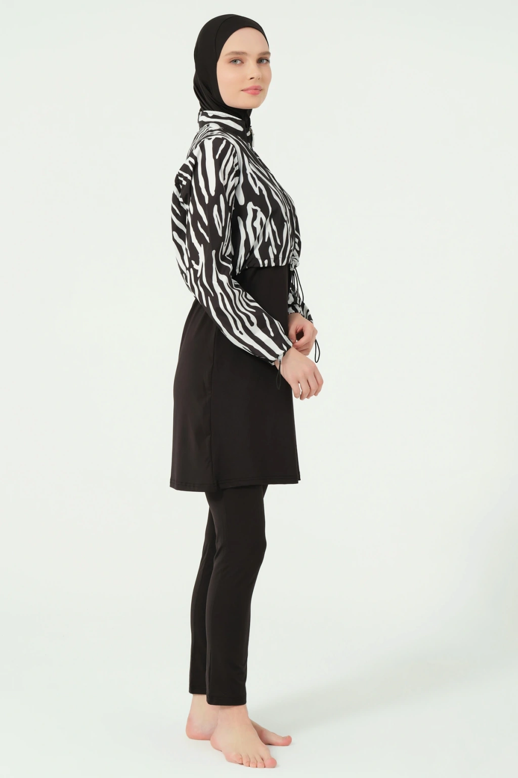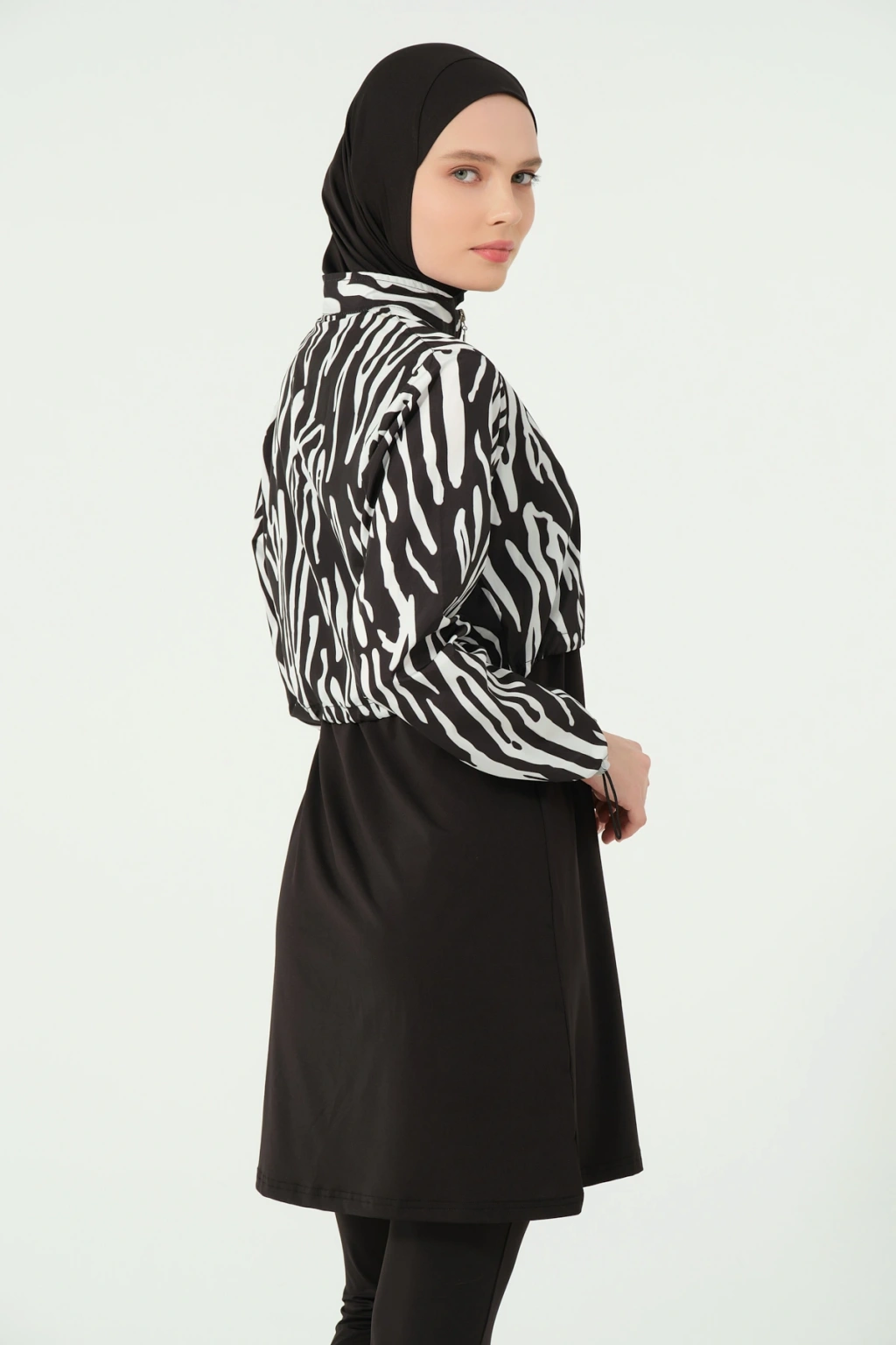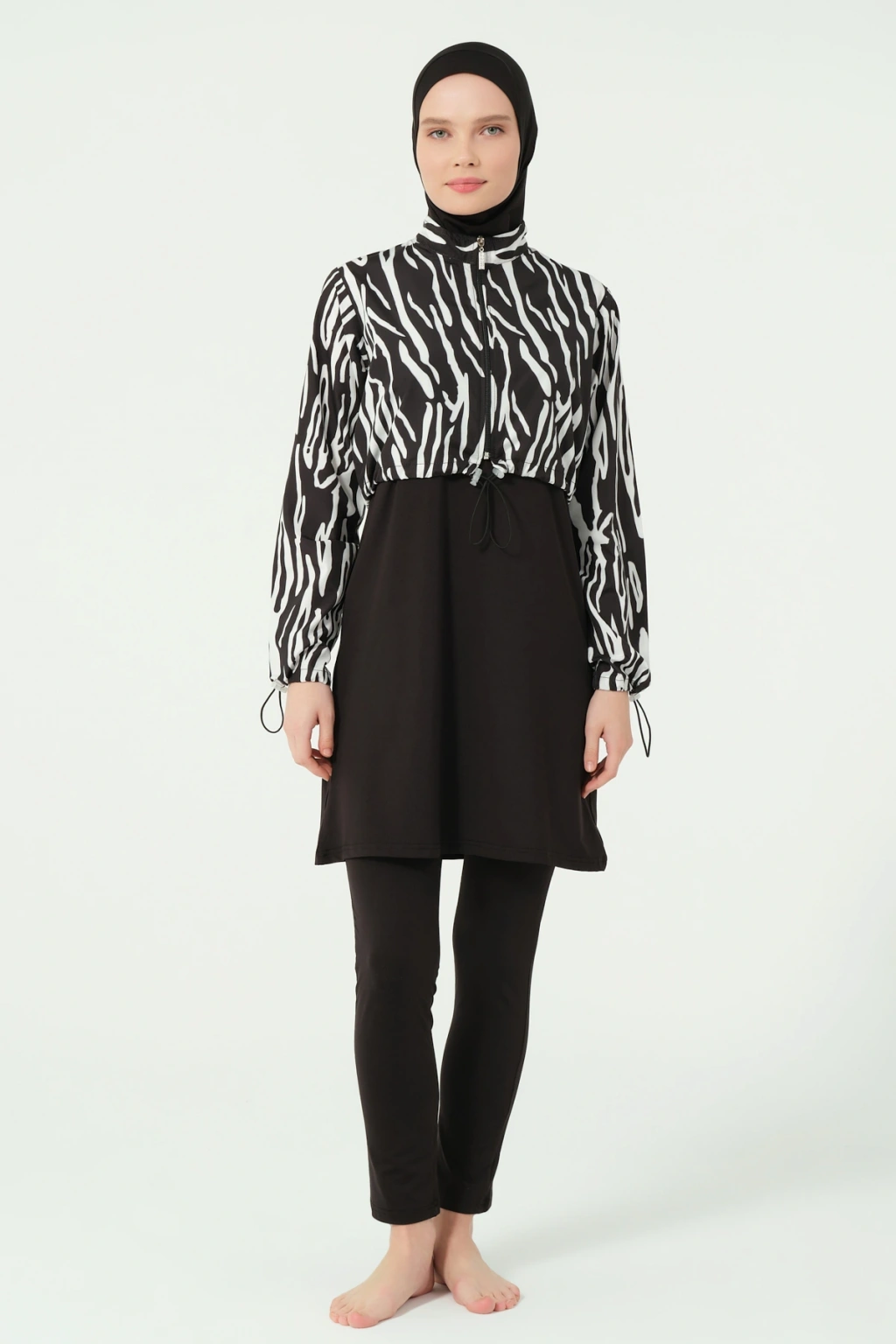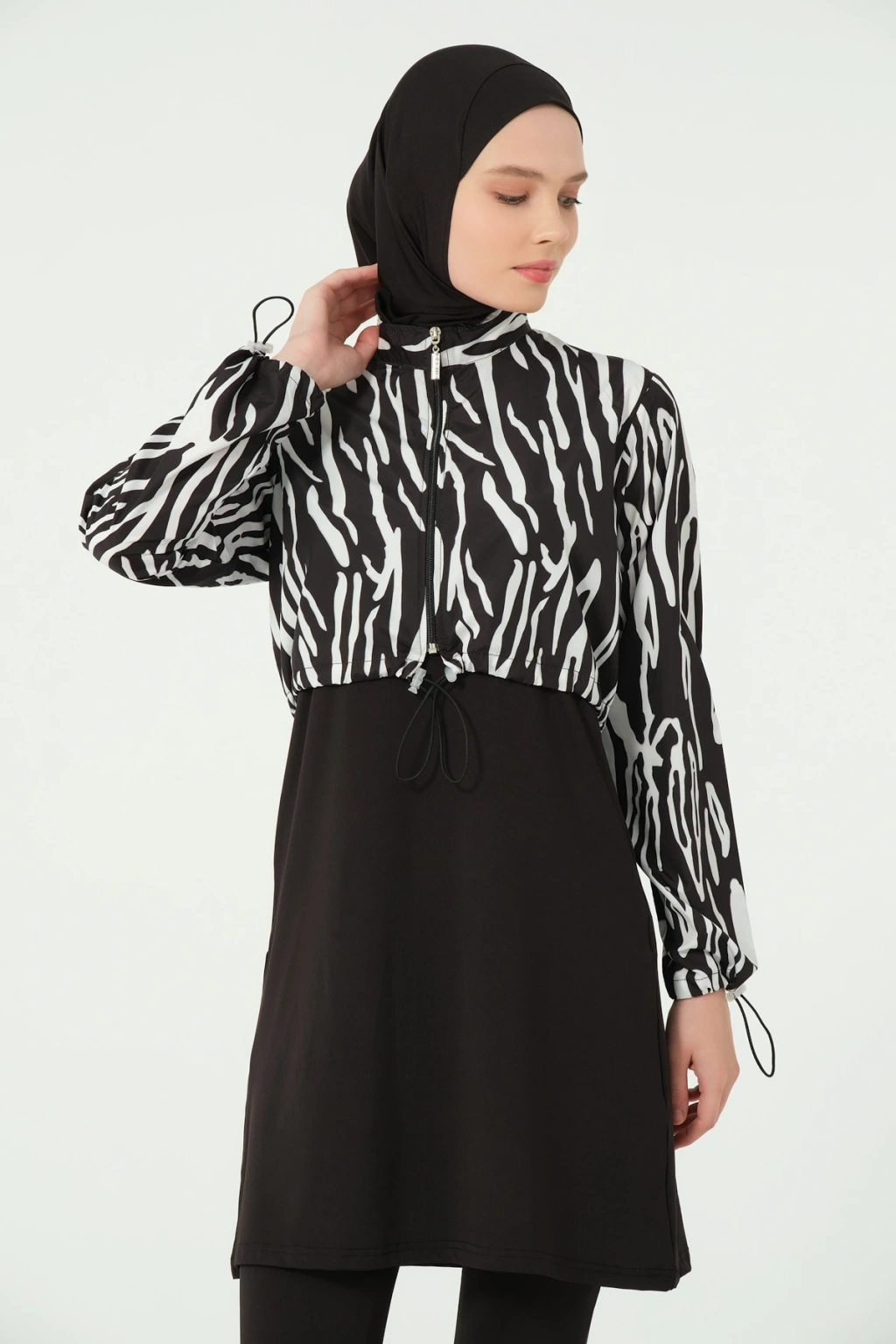 Spor Parmak Geçirmeli Uzun Tesettür Mayo DLX-24505