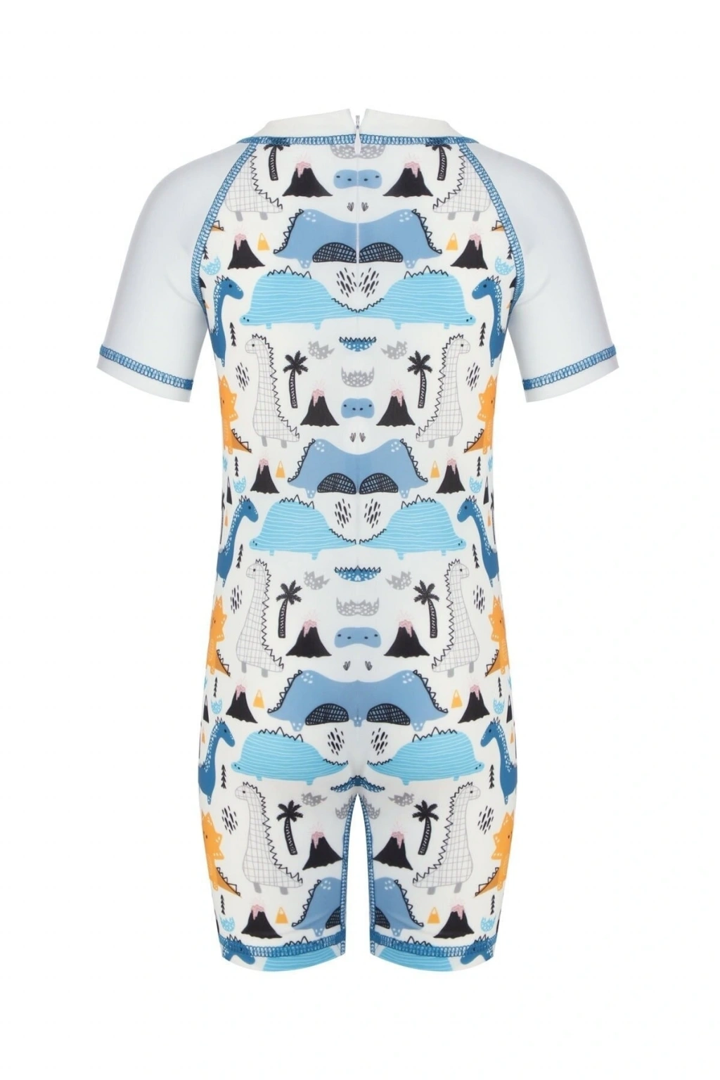 Canlı ve eğlenceli dinozor desenleriyle bebeğinizin plajda veya havuz kenarında neşeli vakit geçirmesini sağlar; Hafif ve nefes alabilen yapısı sayesinde bebeğinizin rahat hareket etmesine olanak tanır; Pratik kullanım sunan tulum tasarımı, kolay giydirme ve çıkarma imkanı sağlar; Su geçirmez özelliği ile bebeğinizin ıslanmasını önler ve konforlu bir deneyim sunar;