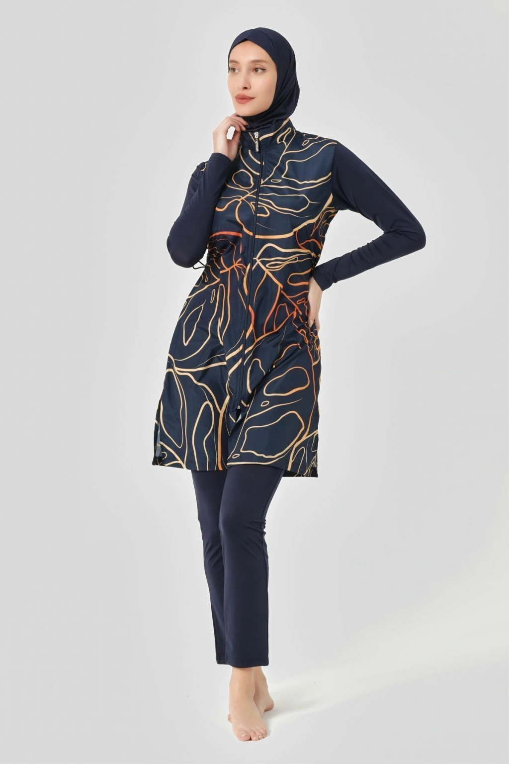 Doğa Desenli Tesettür Mayo Doğanın en güzel renklerini ve desenlerini üzerinizde taşıyacağınız bu tesettür mayo, yazın ruhunu yansıtıyor. ; Kaliteli kumaşı ve rahat kesimi ile doğa aşığı kadınların favorisi olacak. ; Her dalışınızda doğanın bir parçası gibi hissedeceksiniz. ; Tanım Su itici apreli. ; Üst desenli paraşüt kumaş. ; Önü fermuar kapamalı. ; Dik yaka. ; Likra uzun kol. ; Likra tayt. ; Likra eşarp ve bone. ; Tek parça iç çamaşır. ; Paket İçeriği Üst, Tayt, Eşarp, Bone, Tek parça iç çamaşırı olmak üzere 5 parçadan oluşmaktadır. ; Hızlı kuruma, kolay yüzme olanağı sağlar. ; Kumaş İçeriği Ana Kumaş : %100 Poliester, Su itici paraşüt kumaş . ; Yardımcı Kumaş : %95 Poliester, %5 Elastan, Su itici apre uygulanmıştır.;