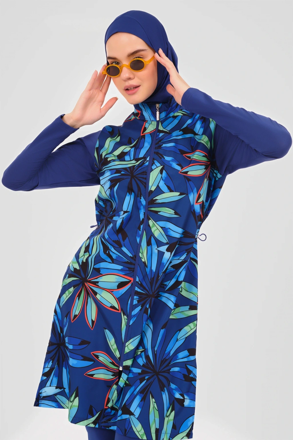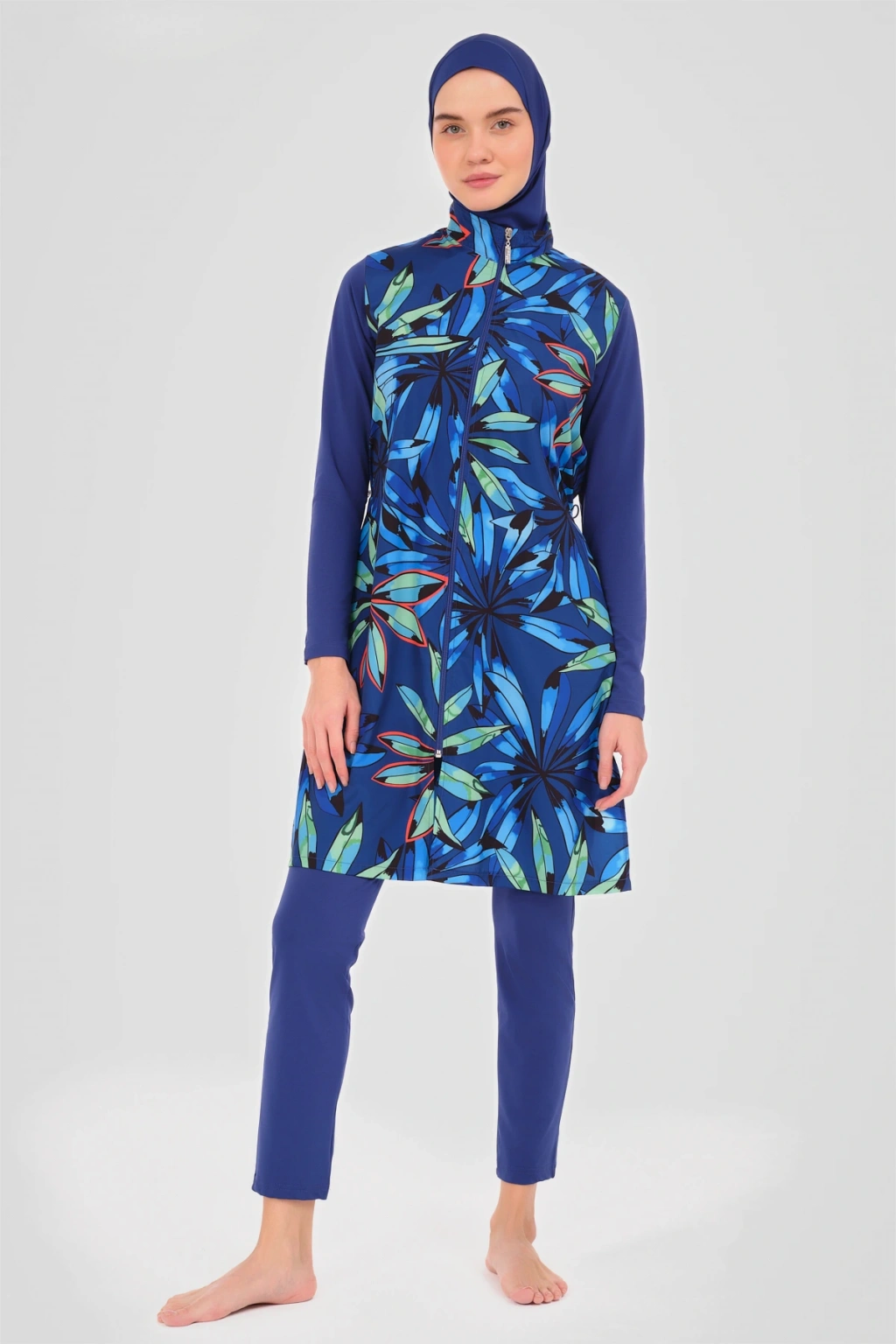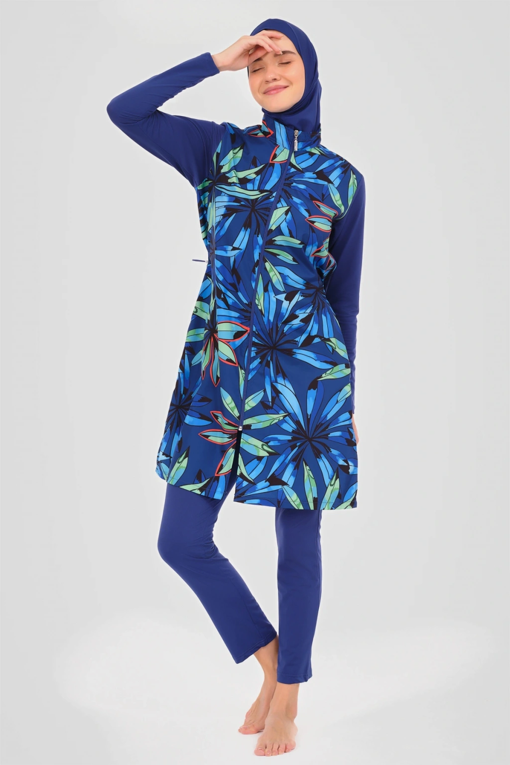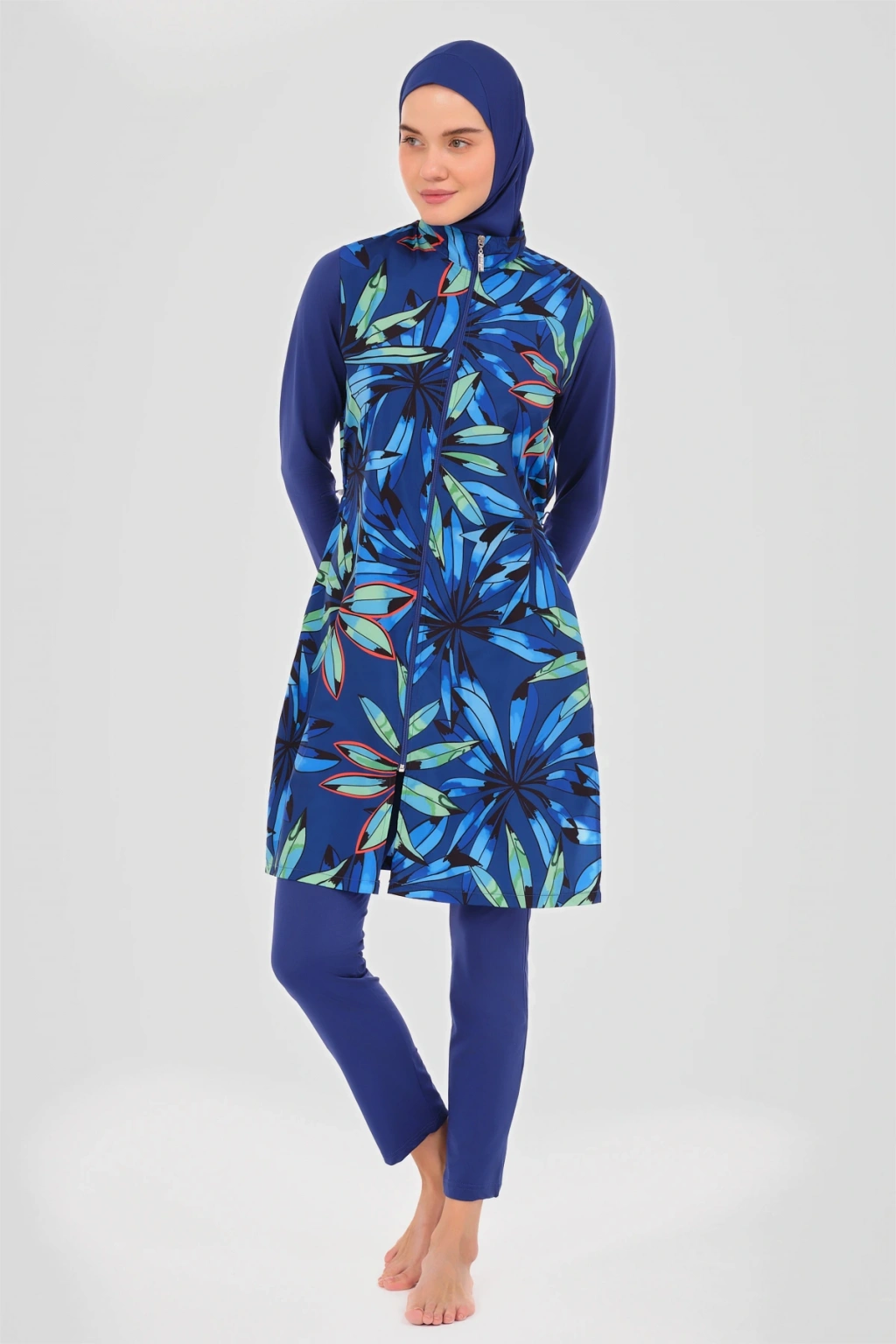 Doğa Desenli Tesettür Mayo Doğanın en güzel renklerini ve desenlerini üzerinizde taşıyacağınız bu tesettür mayo, yazın ruhunu yansıtıyor. ; Kaliteli kumaşı ve rahat kesimi ile doğa aşığı kadınların favorisi olacak. ; Her dalışınızda doğanın bir parçası gibi hissedeceksiniz. ; Tanım Su itici apreli. ; Üst desenli paraşüt kumaş. ; Önü fermuar kapamalı. ; Dik yaka. ; Likra uzun kol. ; Likra tayt. ; Likra eşarp ve bone. ; Tek parça iç çamaşır. ; Paket İçeriği Üst, Tayt, Eşarp, Bone, Tek parça iç çamaşırı olmak üzere 5 parçadan oluşmaktadır. ; Hızlı kuruma, kolay yüzme olanağı sağlar. ; Kumaş İçeriği Ana Kumaş : %100 Poliester, Su itici paraşüt kumaş . ; Yardımcı Kumaş : %95 Poliester, %5 Elastan, Su itici apre uygulanmıştır.;