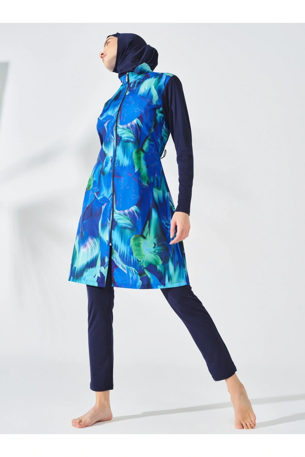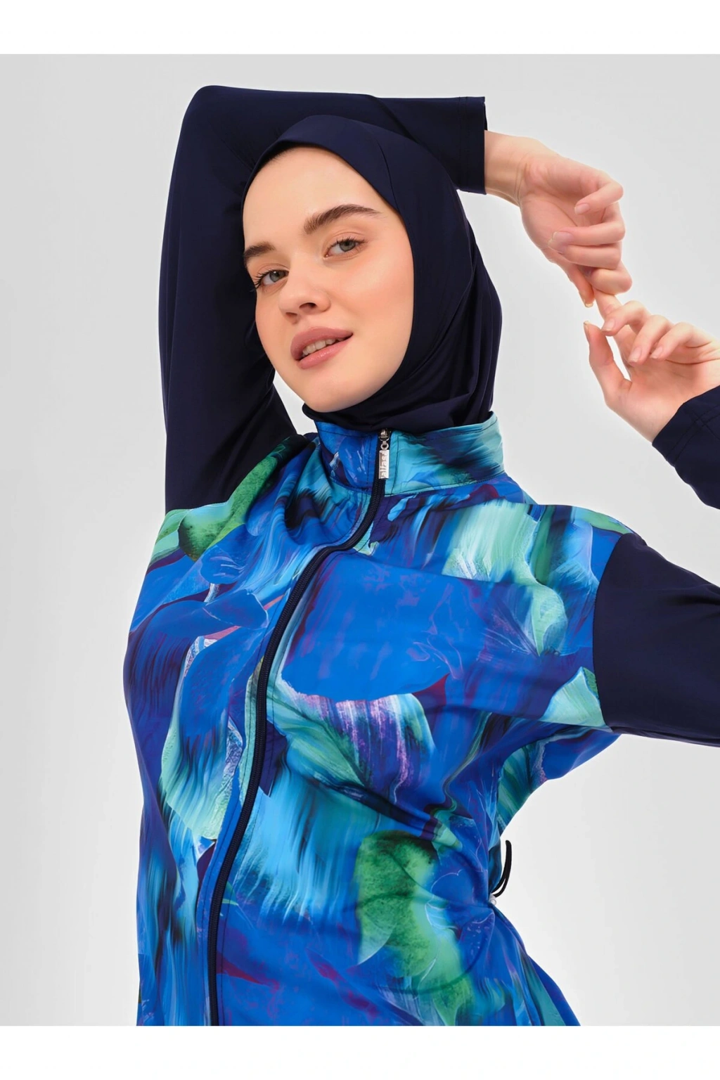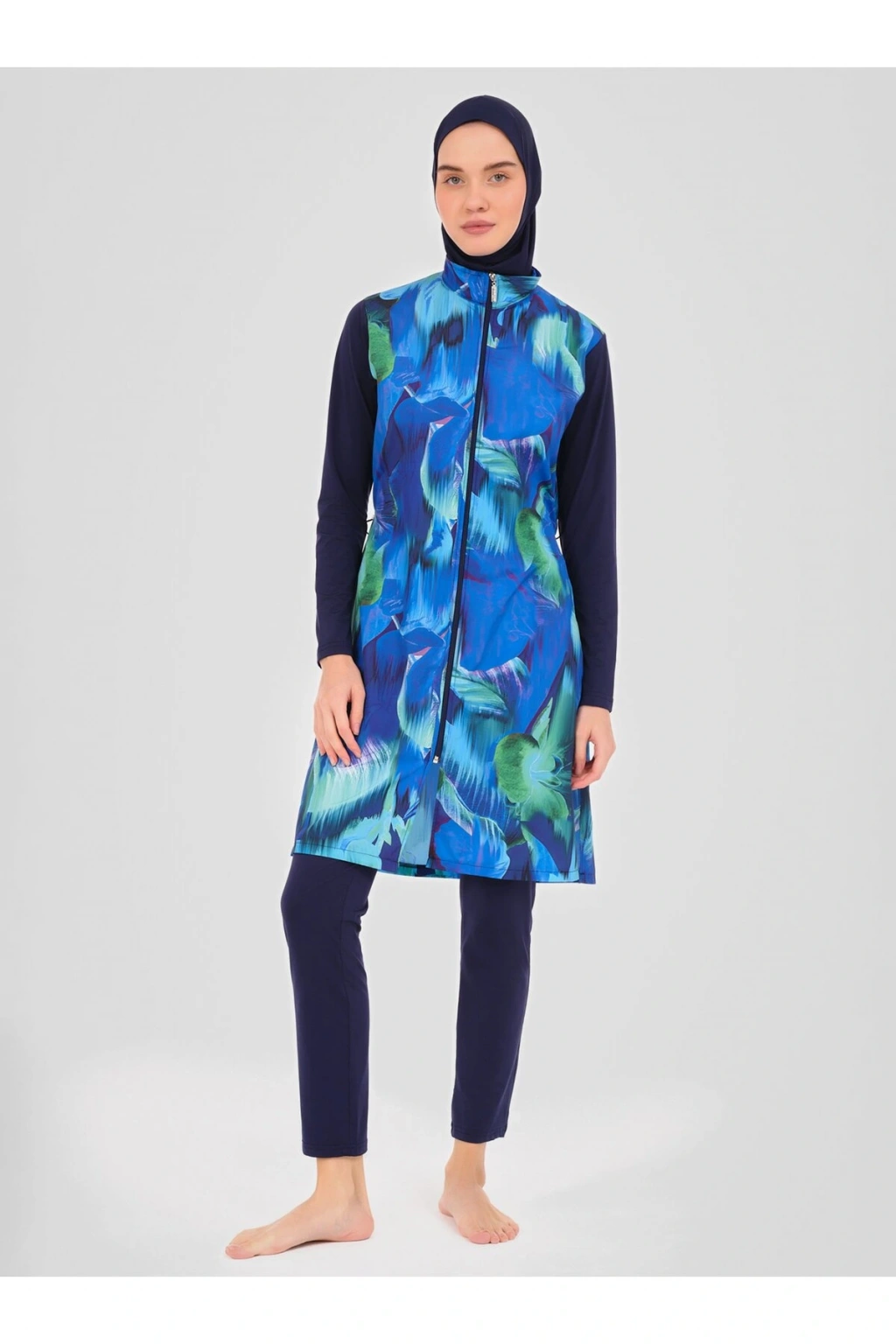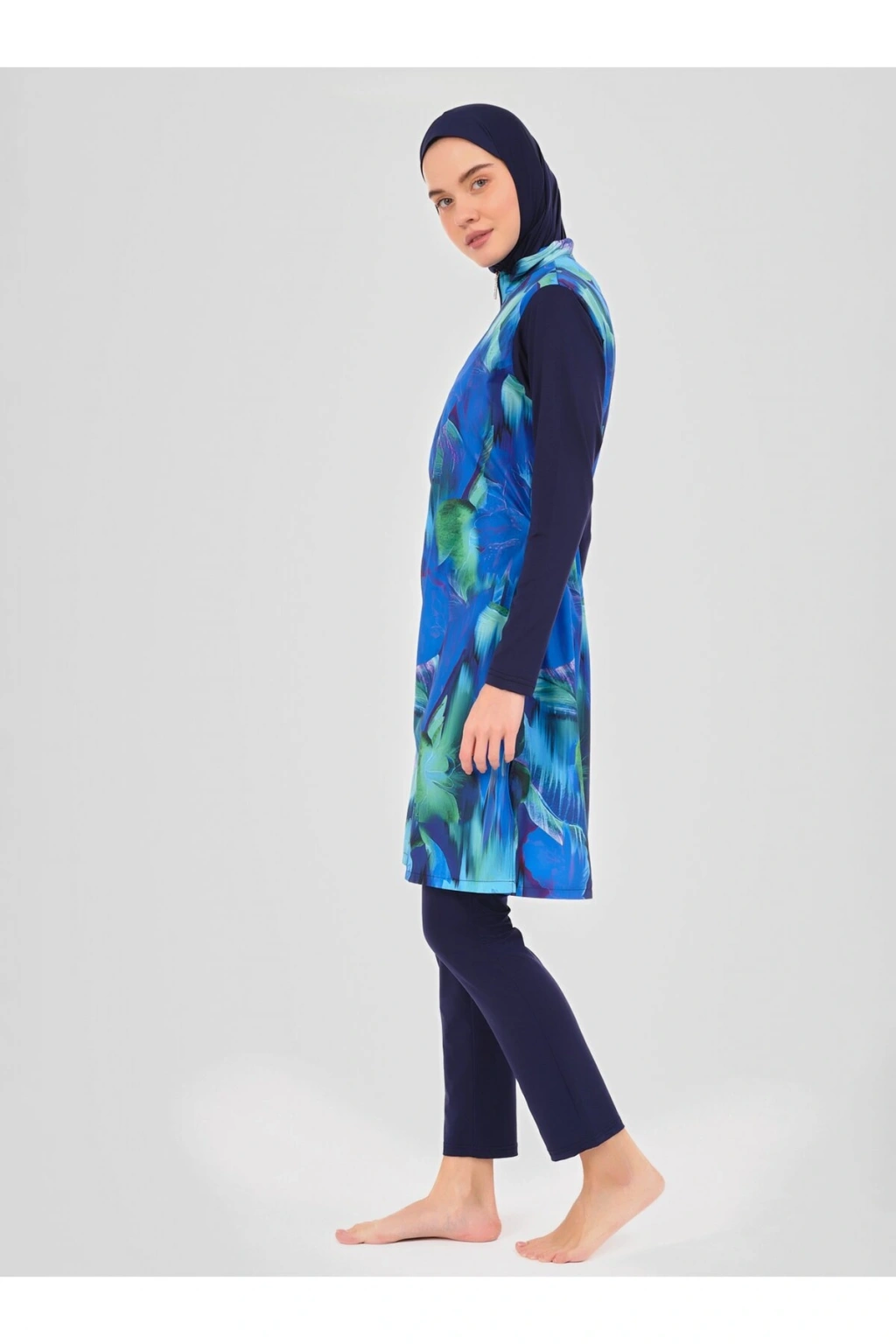 Doğa Desenli Tesettür Mayo- Lacivert -