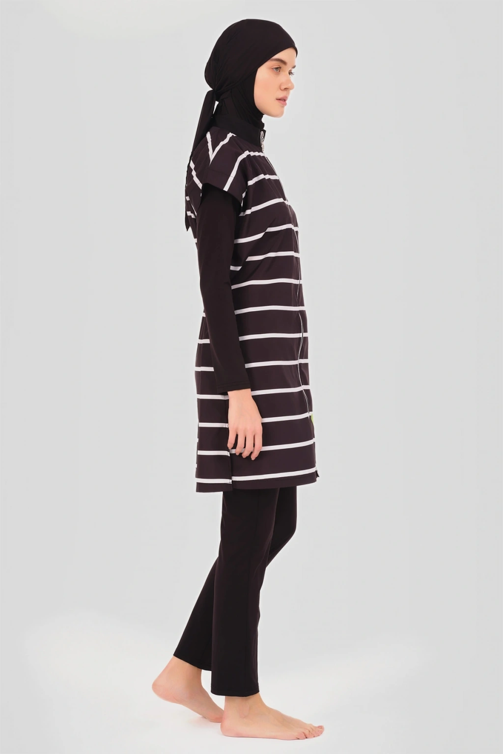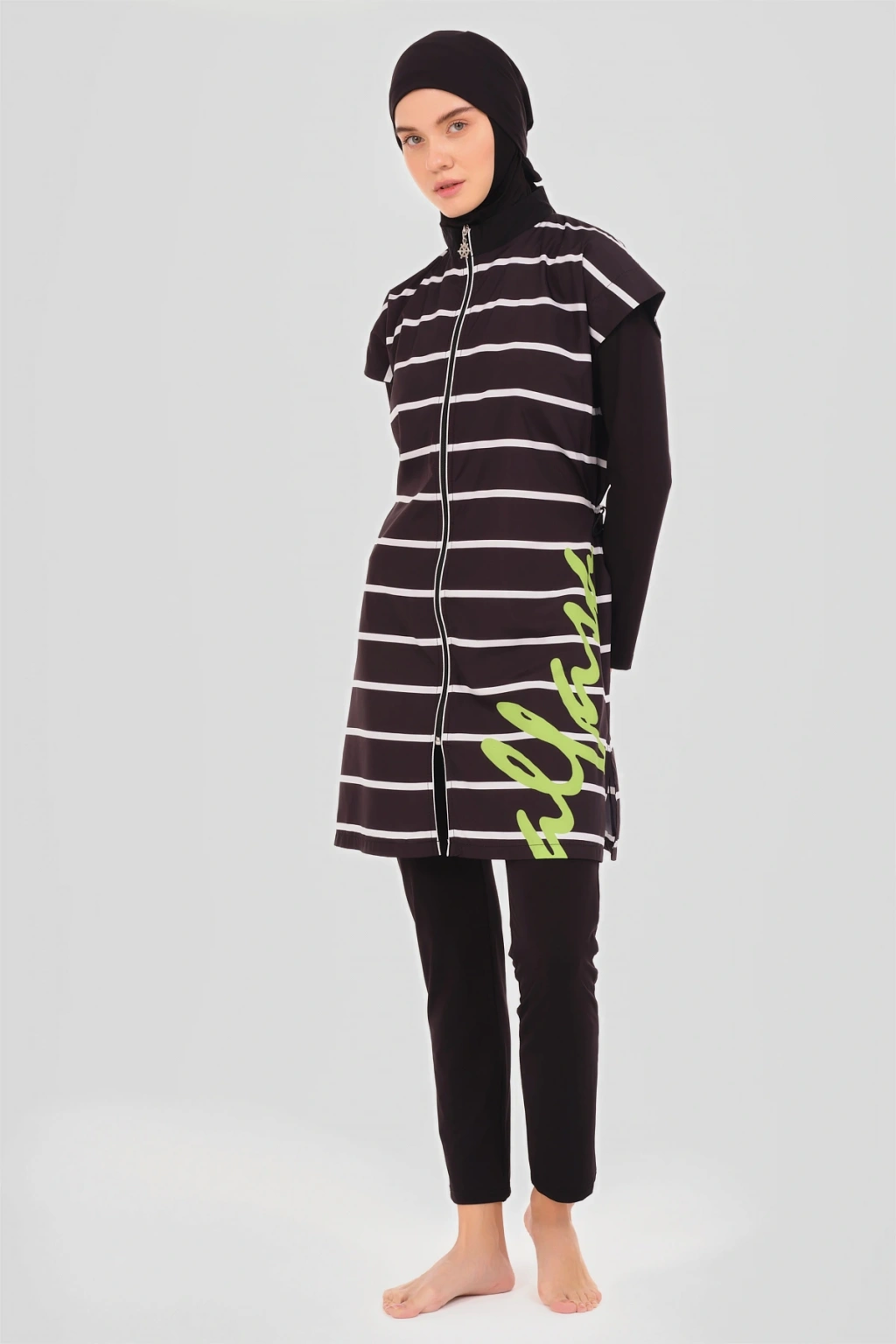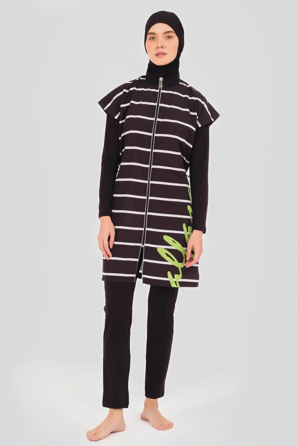 Dümen Çizgili Tesettür Mayo Dümen ve çizgili desenlerin mükemmel uyumuyla tasarlanmış bu tesettür mayo, denizcilik esintilerini stilinize taşır. Kaliteli kumaşı ve rahat kesimi ile suyun keyfini çıkarırken, şıklık ve konforu bir arada sunar. Yaz gardırobunuzun vazgeçilmez bir parçası olacak. Tanım Su itici apreli. Üst desenli paraşüt kumaş. Üst desenli. Önü fermuar kapamalı. Dümen elcik süslemeli. Dik yaka. Likra tayt. Likra eşarp ve üçgen bone. Yeni nesil crop; Likra uzun kollu. İçi kaplı crop tasarım. Paket İçeriği Üst, Tayt, Eşarp, Üçgen bone, Uzun kollu crop olmak üzere 5 parçadan oluşmaktadır. Hızlı kuruma, kolay yüzme olanağı sağlar. Kumaş İçeriği Ana Kumaş : %100 Poliester, Su itici paraşüt kumaş . Yardımcı Kumaş : %95 Poliester, %5 Elastan, Su itici apre uygulanmıştır.