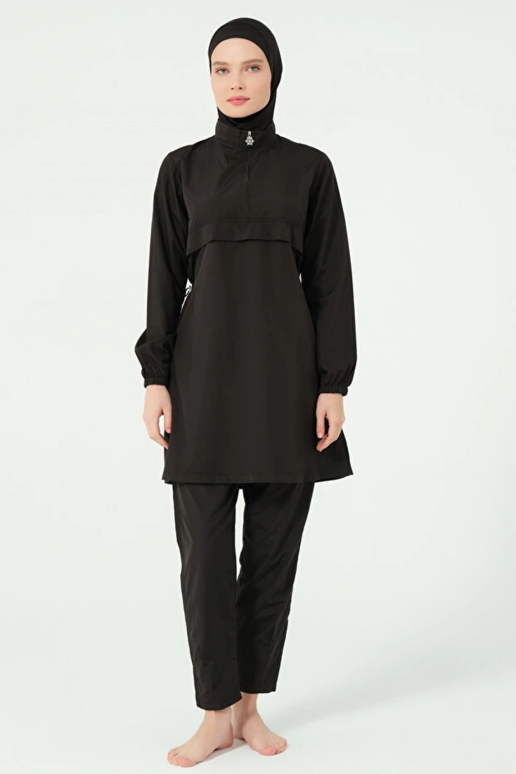 Tam Kapanma ve Konfor: Uzun kollu üst, tam boy tayt ve uyumlu bone ile eksiksiz bir kapanma sağlar.