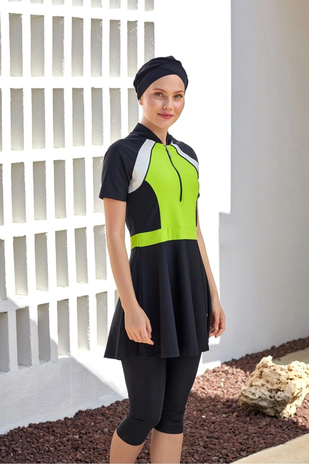 - Siyah renkteki Elvıra Kısa Kollu Tesettür Mayo, şıklığı ve rahatlığı bir arada sunar.; - 2 iplik dokuma tipi ile üretilmiş olup, dayanıklılığı artırırken konforlu bir kullanım sağlar.; - Beachwear koleksiyonuna özel tasarlanmış bu mayo, plajda şıklığınızı korumanız için idealdir.; - %100 poliamid materyal bileşeni sayesinde hızlı kuruyan yapısıyla suyun keyfini çıkartırken cildinizi korur.; - Type 2 yıkama talimatına uygun şekilde kolayca temizlenebilir; böylece mayonuzu uzun süre ilk günkü gibi kullanabilirsiniz.; - Standart kol tipiyle hareket özgürlüğünüzü kısıtlamaz ve günlük aktivitelerinizde rahatlık sağlar.; - Düz deseniyle zamansız bir tarz sunarken, her tür aksesuarla kolayca kombinlenebilir.; - Maxi boyu ile hem şık hem de koruyucu bir görünüm kazandırırken, mono kapama detayı pratik kullanım imkanı tanır.; - Tesettür giyim koleksiyonuna ait bu mayo, kadınların yaz aylarında rahatlıkla tercih edebileceği parçalardan biridir.; - Polyester karışımlı kumaşı sayesinde hafifliği ve nefes alabilirliği ön plana çıkartarak sıcak yaz günlerinde bile konforlu hissetmenizi sağlar.; - Bisiklet yakası ile modern ve zarif bir siluet oluştururken, ekstra özellik bulunmaması minimalist tasarım anlayışını benimsediğiniz anlamına gelir.; - Kısa kol boyu yaz ayları için idealdir; serin tutma özelliğiyle güneşin altında serin kalmanızda yardımcı olur.; - Dokuma kumaş tipi dayanıklılığı arttırarak mayonuzun formunu uzun süre korumasına katkıda bulunur.; - Ekstra sürdürülebilirlik detayına sahip olmayan bu ürünün üretim sürecinde çevreye duyarlı düşüncelerden yoksun olsa da kalite standartlarına uygun olarak üretilmiştir.; - Regular paça tipiyle rahat hareket etme imkanı tanırken baggy kalıp geniş kesimiyle vücut hatlarınıza uyum sağlar.; - Yetişkin yaş grubuna hitap eden bu mayo, her bedene uygun L bedeniyle geniş kullanıcı kitlesine hizmet vermektedir.; - Remsa Mayo markasının garantisi altında olan bu ürün, kalitesiyle ön plana çıkarken müşteri memnuniyetini önemseyen yaklaşım sergilemektedir.