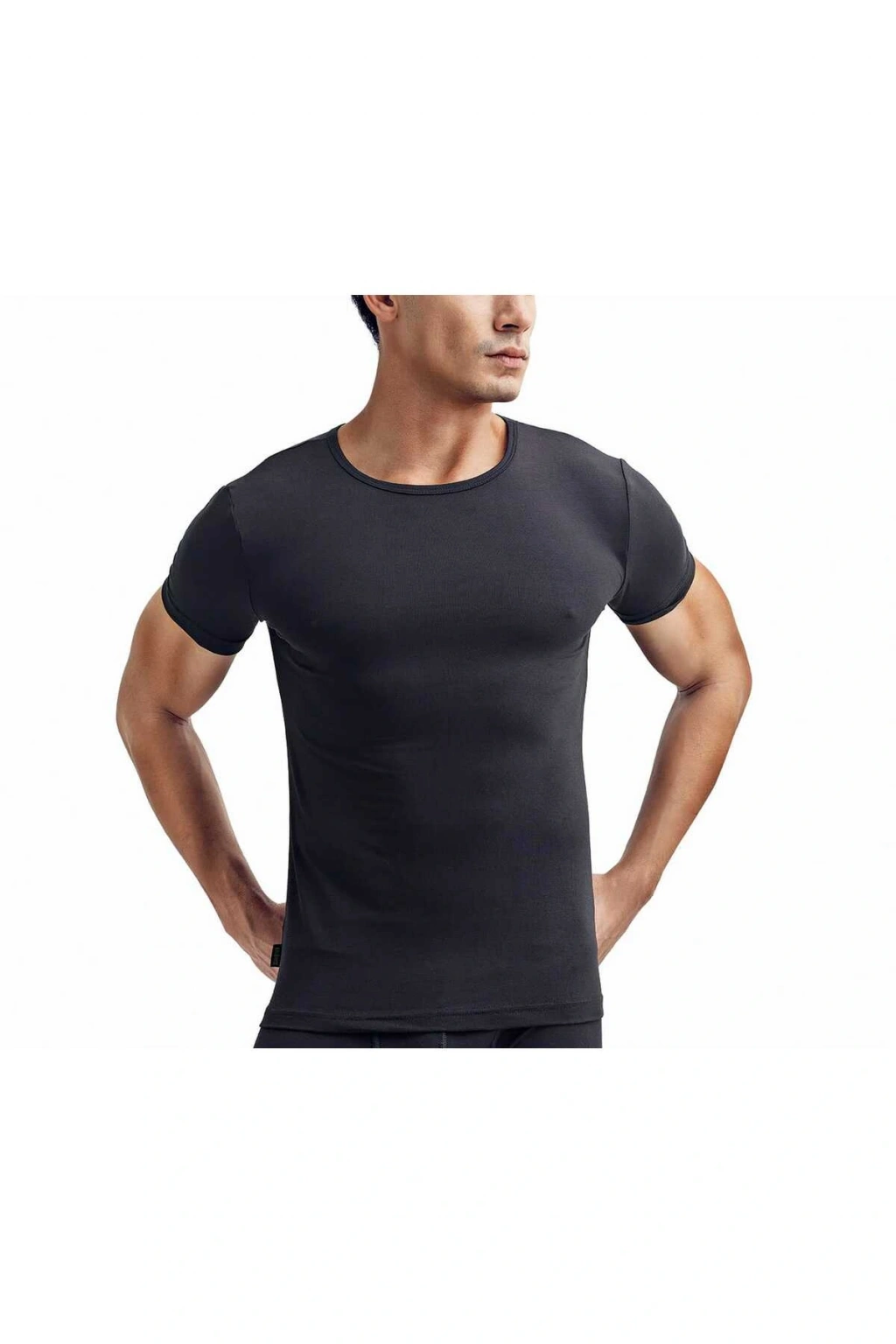Erkek 2'li Ekonomik Paket Siyah Bambu Bisiklet Yaka Kısa Kollu Fanila Atlet