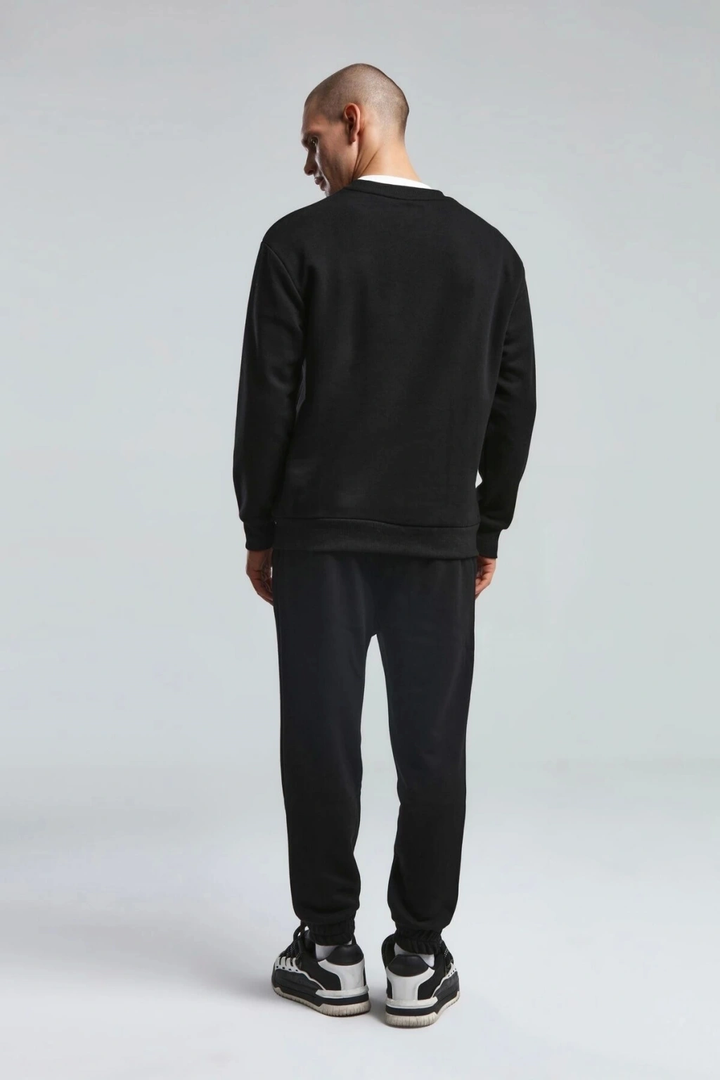 Erkek Bisiklet Yaka Uzun Kol Basıc Sweatshirt Siyah