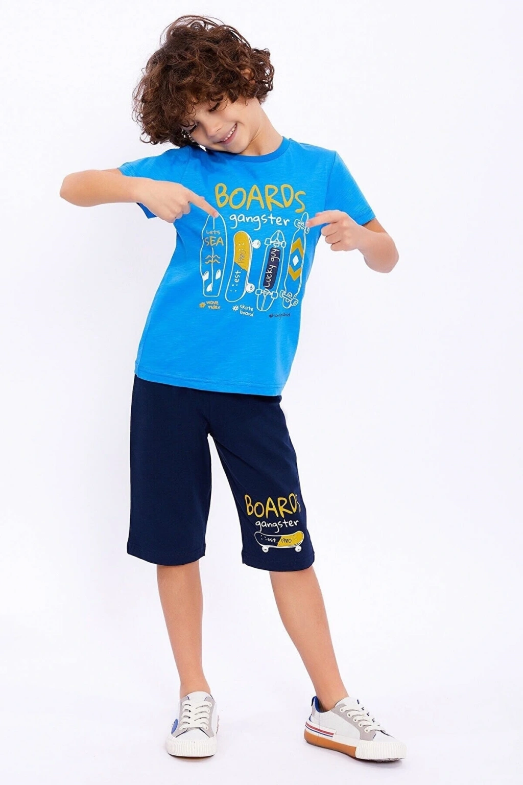 Rahatlık ve konforun adresi, pamuklu kumaştan üretilmiş erkek çocuk kapri takımı.; Günlük kullanım için ideal olan bu pijama takımı, evdeki rahat anların vazgeçilmezi olacak.; Normal bel tasarımı sayesinde gün boyu rahat hareket etme özgürlüğü sunar.; Bermuda paça boyu ile modern ve şık bir görünüm sağlar; çocukların özgürce hareket etmesine olanak tanır.; Homewear koleksiyonunun parçası olan bu set, ev giyiminde stil sahibi olmanızı sağlar.; Kısa kol tasarımı yaz ayları için idealdir, serin tutar ve hareket özgürlüğünüzü artırır.; %100 pamuklu materyaliyle yumuşak dokusuyla cildi tahriş etmez ve nefes alabilir yapısıyla konforlu bir uyku deneyimi sunar.; Çocukların büyüme dönemlerine uygun olarak tasarlanmıştır; yaş grubuna göre esneklik gösterir.; İki parçadan oluşan set içeriğiyle ihtiyacınız olan her şey tek pakette!;