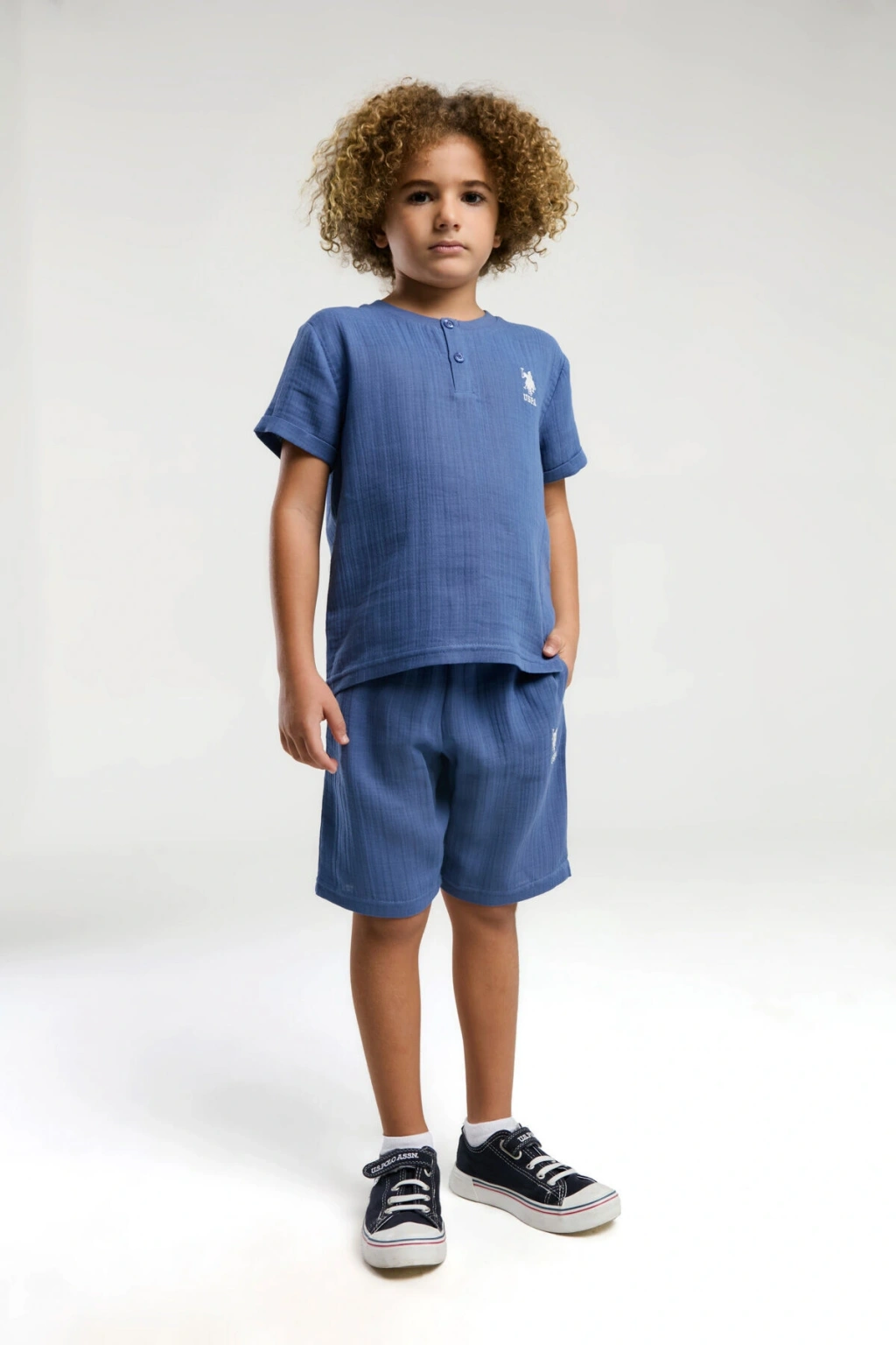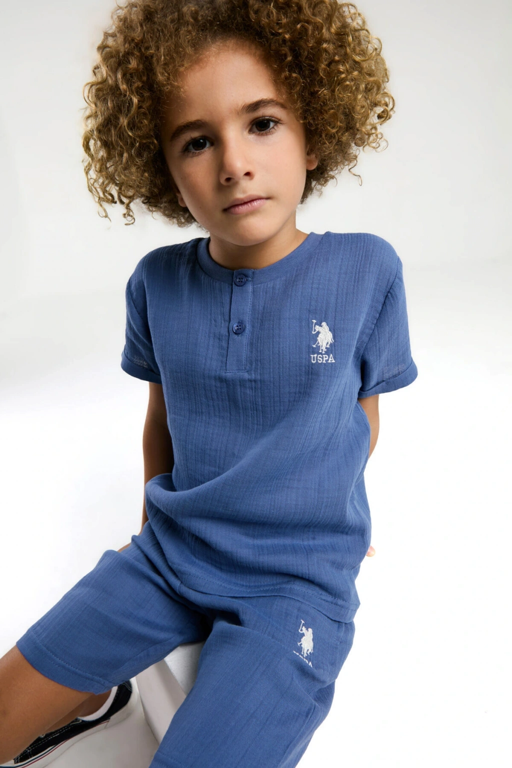 U.; S.; Polo Assn.; Erkek Çocuk Krem Bermuda Takım