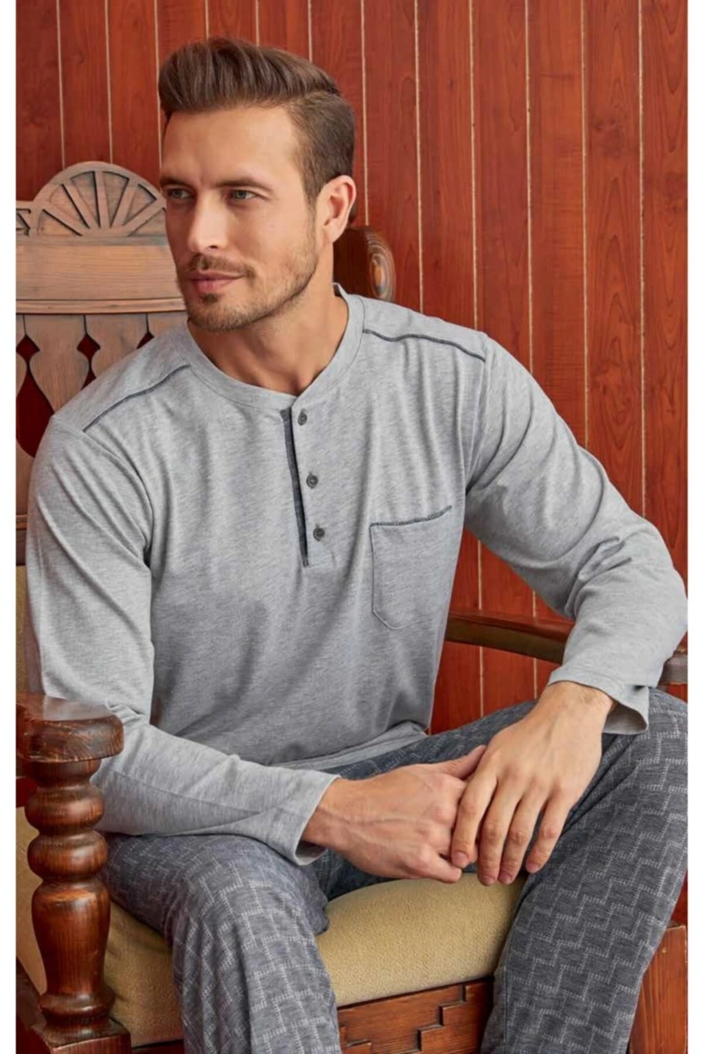 Evde rahatlığı ve şıklığı bir arada sunan gri renkli yarım düğmeli pijama takımı, her yaş grubuna hitap eder; Sade ve şık tasarımıyla dikkat çeken düz desenli pijama takımı, ev ortamında konforlu bir görünüm sağlar; Dokuma kumaş yapısı sayesinde yumuşak dokunuşu ve dayanıklılığı ile öne çıkar; Her türlü yaş grubuna uygun olarak tasarlanmış olup, geniş beden skalasıyla herkes için ideal bir seçimdir; Pratik kullanım sunan düğmeli tasarımı ile pijama takımını kolayca giyip çıkarabilirsiniz;
