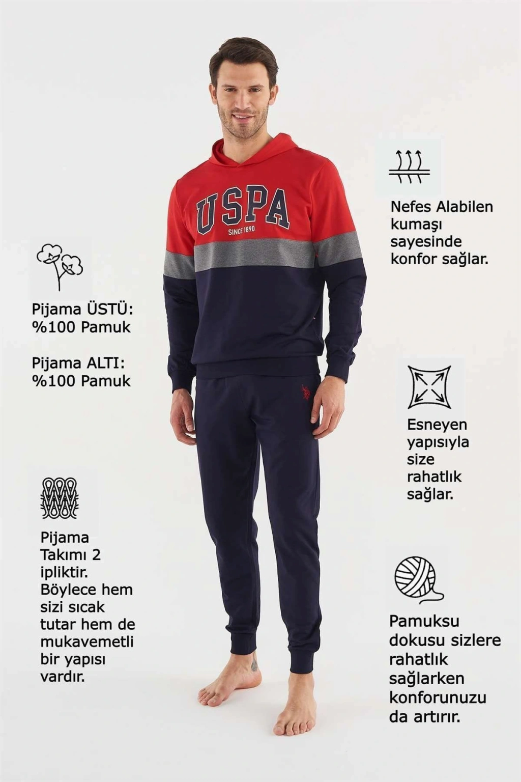 İki parçadan oluşan set, hem rahatlık hem de şıklık arayanların tercihi olacak.; Ev ortamında rahatlıkla kullanılabilen homewear koleksiyonunun parçası olarak tasarlanmıştır.; Regular kalıp ile her bedene uygun ve konforlu bir oturuş sunar.; Lisanslı marka güvencesiyle kaliteli dokuma kumaştan üretilmiştir.; Her yaştan erkeğin kullanımına uygun olarak tasarlanmıştır; böylece tüm aile bireyleri için idealdir.; Dokuma kumaş tipi sayesinde yumuşaklık ve dayanıklılık bir arada sunulur.;