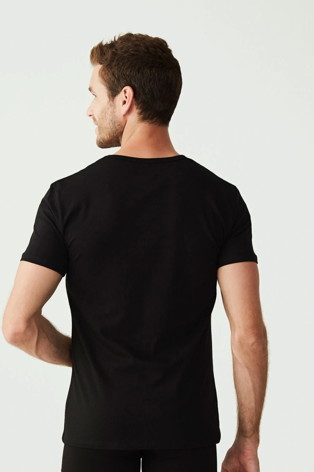 Erkek 2'li Ekonomik Paket Siyah Bambu V Yaka Kısa Kollu Fanila Atlet