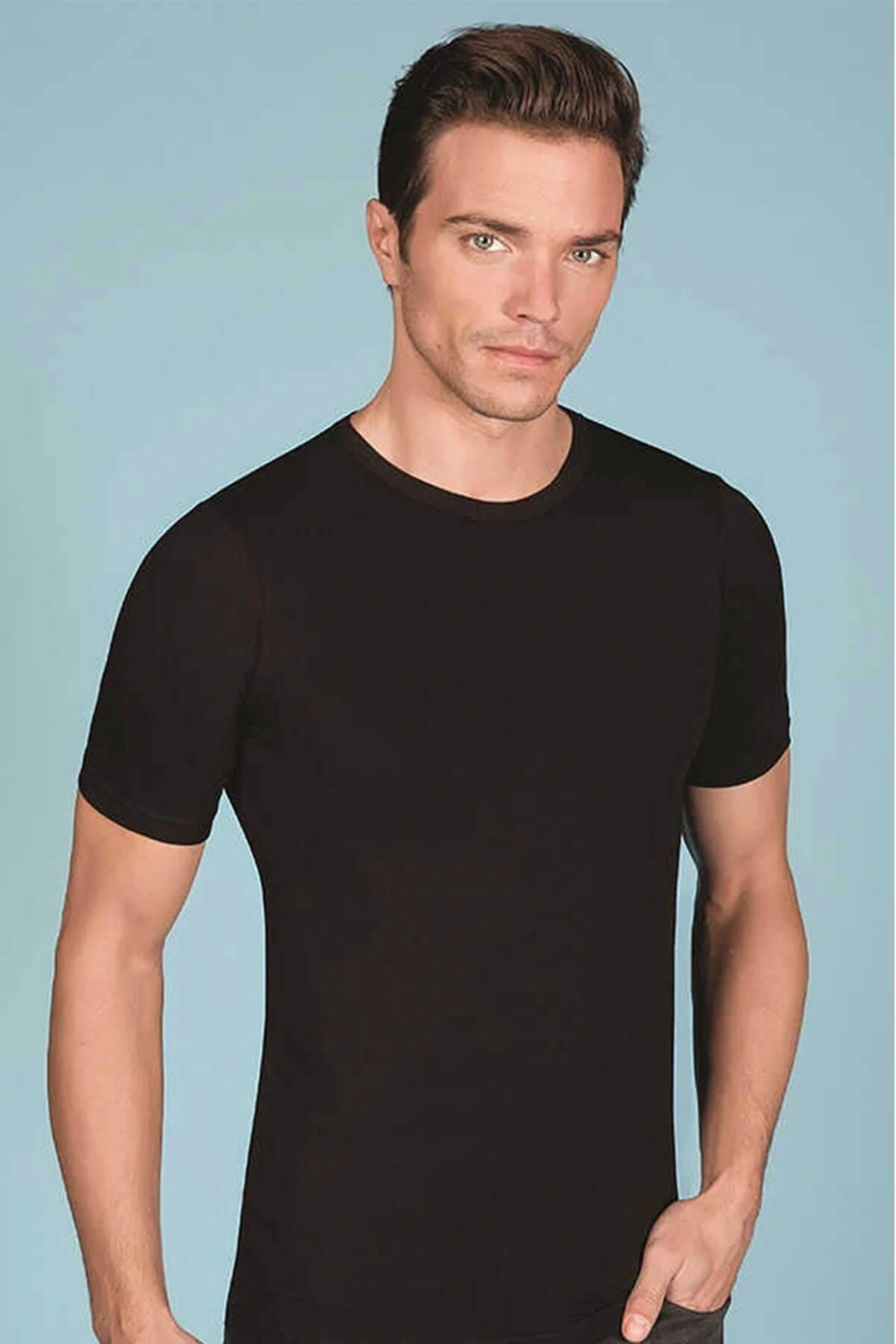 Erkek Siyah Likralı Bisiklet Yaka Atlet