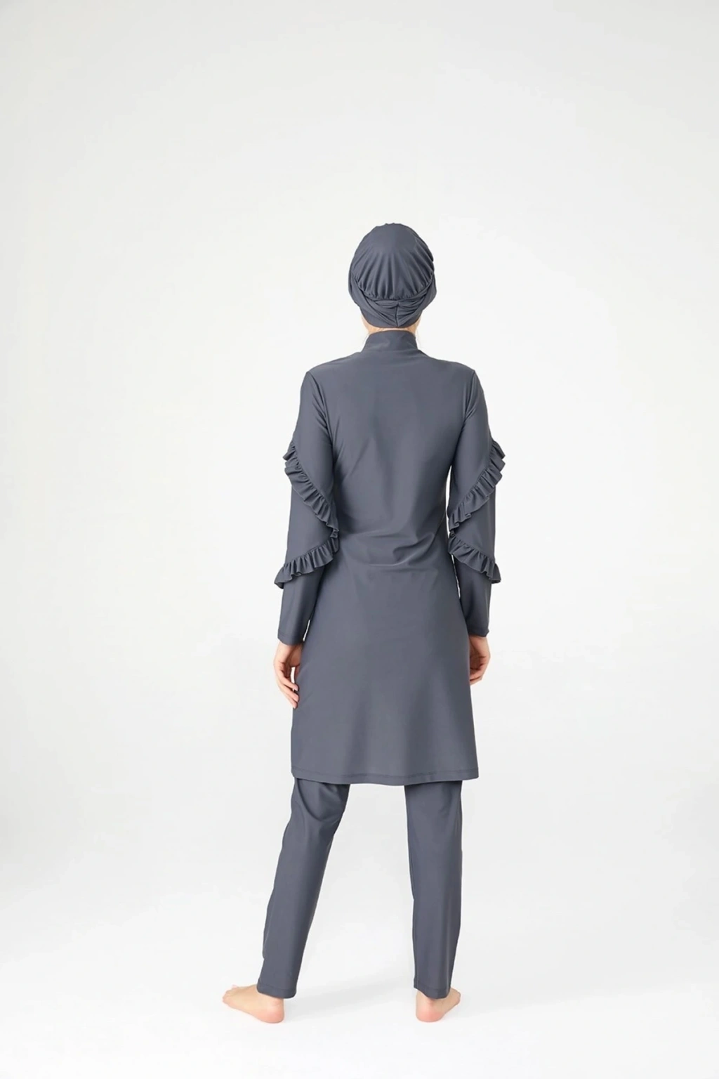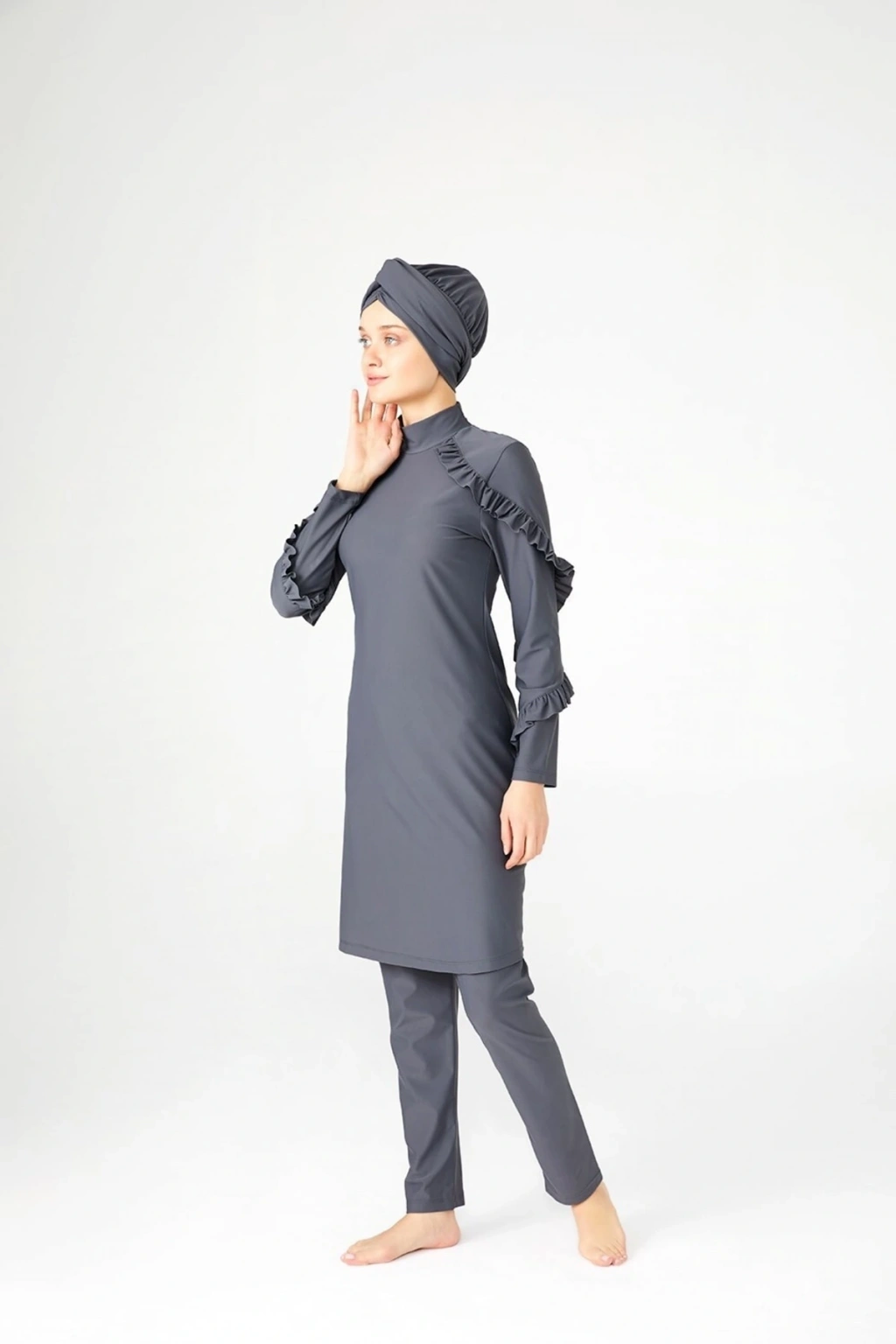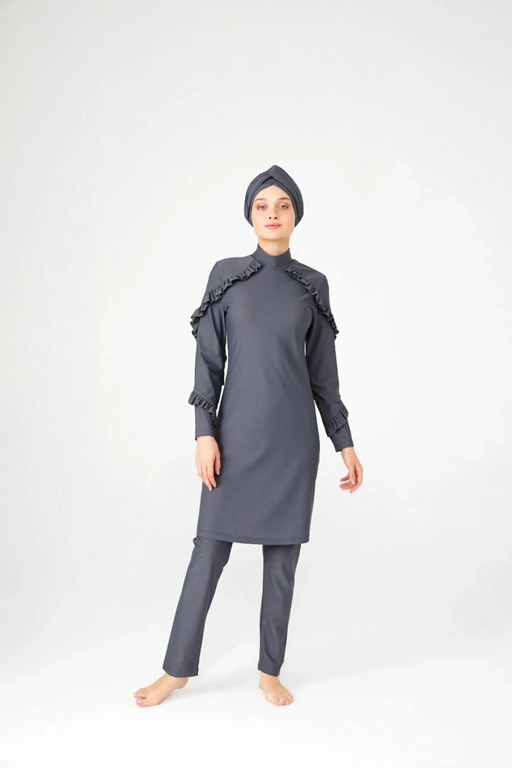 Ürün Bilgileri: Fırfır detaylar ile hareket kazandırılmış Adasea tesettür mayo su itme apreli kumaştan tasarlanmış olup kolay kuruma özelliğine sahiptir. ; Özel tasarım bonesinin üst kısmını boyun kısmına indirerek boynunuzu da kolayca kapatabilirsiniz. ; Ayrıca üst kısmın içinde yer alan lastik detay sayesinde pantolon ile birleşimi sağlanır ve sırt kısmı açılma yapmaz. ; Farklı renk seçenekleri mevcuttur. ; Ürünün büyük beden seçenekleri de mevcuttur. ; Resimdeki ürünün ölçüleri:Beden: M , Boy: 82 cm , Göğüs: 92 cm , Bel: 88 cm , Basen: 110 cm , Tayt Boyu: 89 cm Kumaş Bilgisi : %80 Polyamid %20 Elastan;