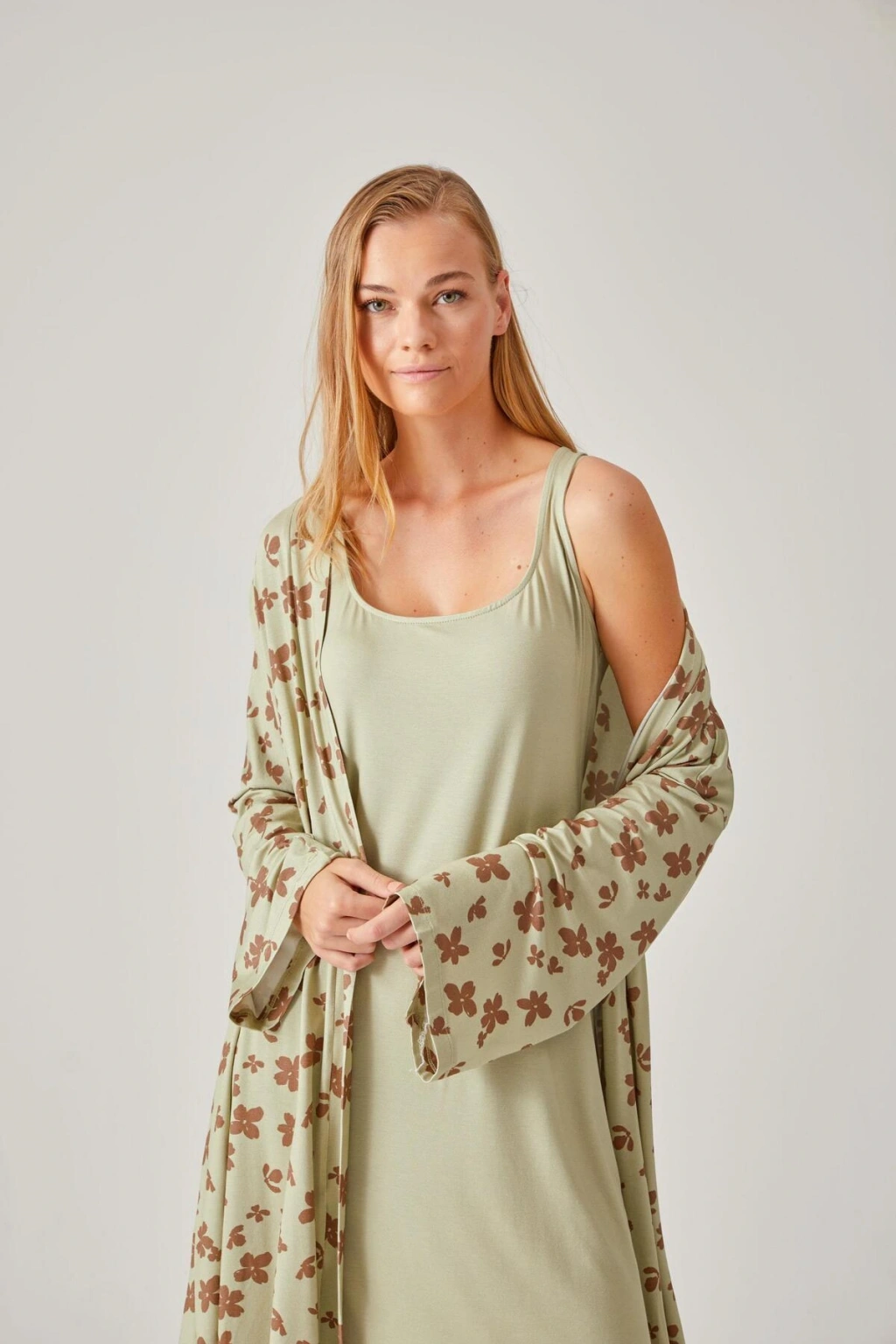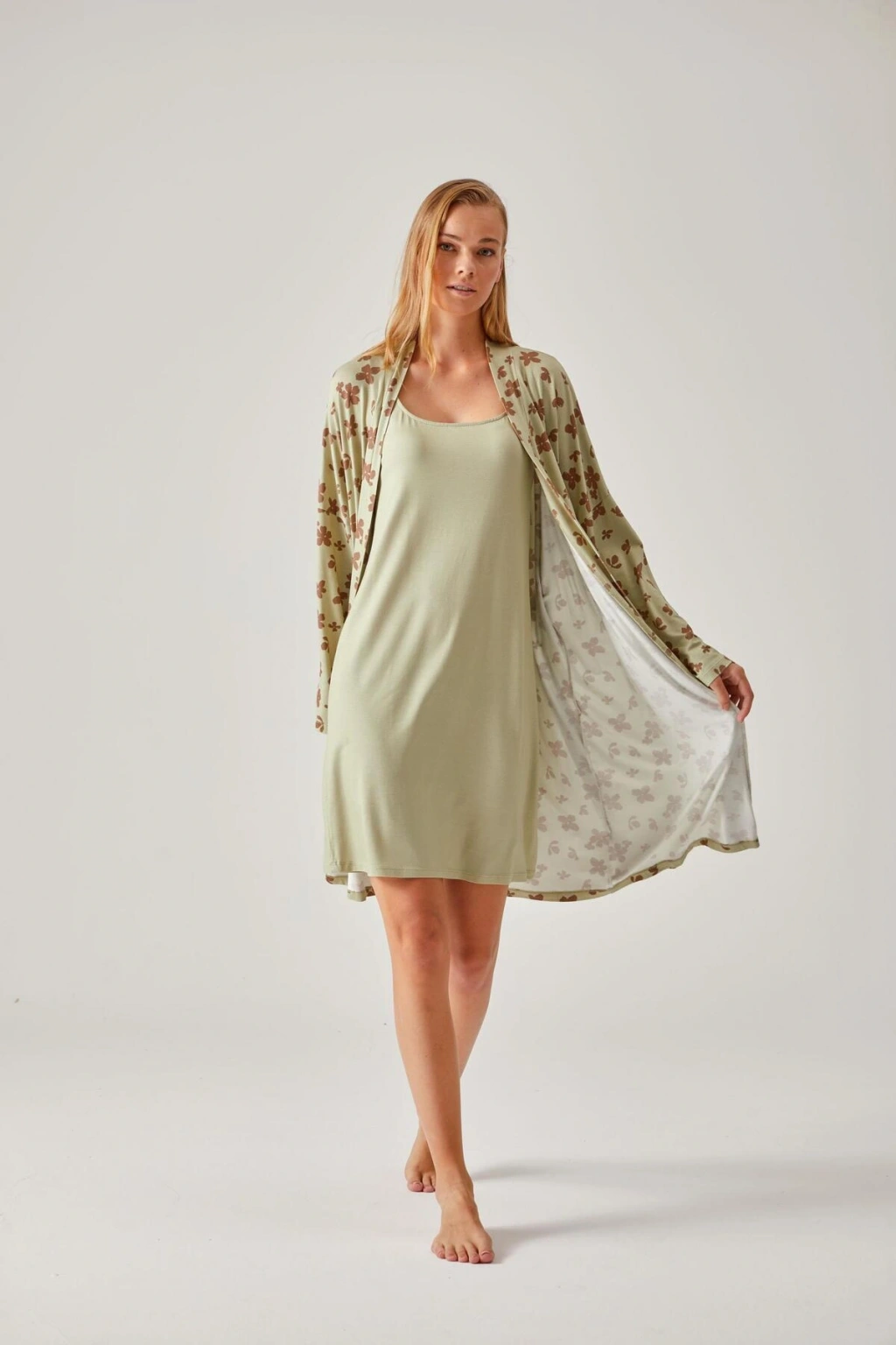 Örme kumaş yapısı ile konforlu bir kullanım sunar ve rahat hareket etme olanağı sağlar; Regular kalıp sayesinde vücut hatlarını saran ancak sıkmayan bir yapıya sahiptir, gün boyu rahatlık hissi verir; Homewear koleksiyonunun bir parçası olarak evde şıklığı ve rahatlığı bir arada sunar; Midi boy tasarımı ile hem şık hem de pratik bir görünüm sağlar; evde geçirilen zamanlarda bile stil sahibi olmanızı kolaylaştırır; %95 viskoz ve %5 elastan materyal bileşeni, esneklik ve yumuşaklık sunarak gün boyu konforlu bir deneyim yaşatır; Tüm yaş gruplarına hitap eden tasarımıyla geniş bir kullanıcı yelpazesine sahiptir; herkes için ideal bir seçimdir;