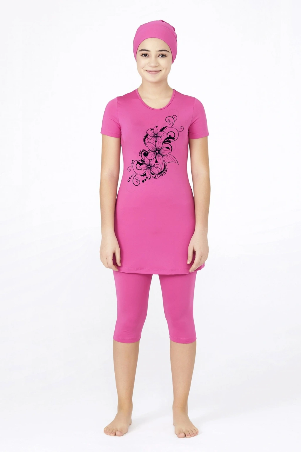 Su Desenli Pareolu 6 Parça Tesettür Mayo DLX-24605