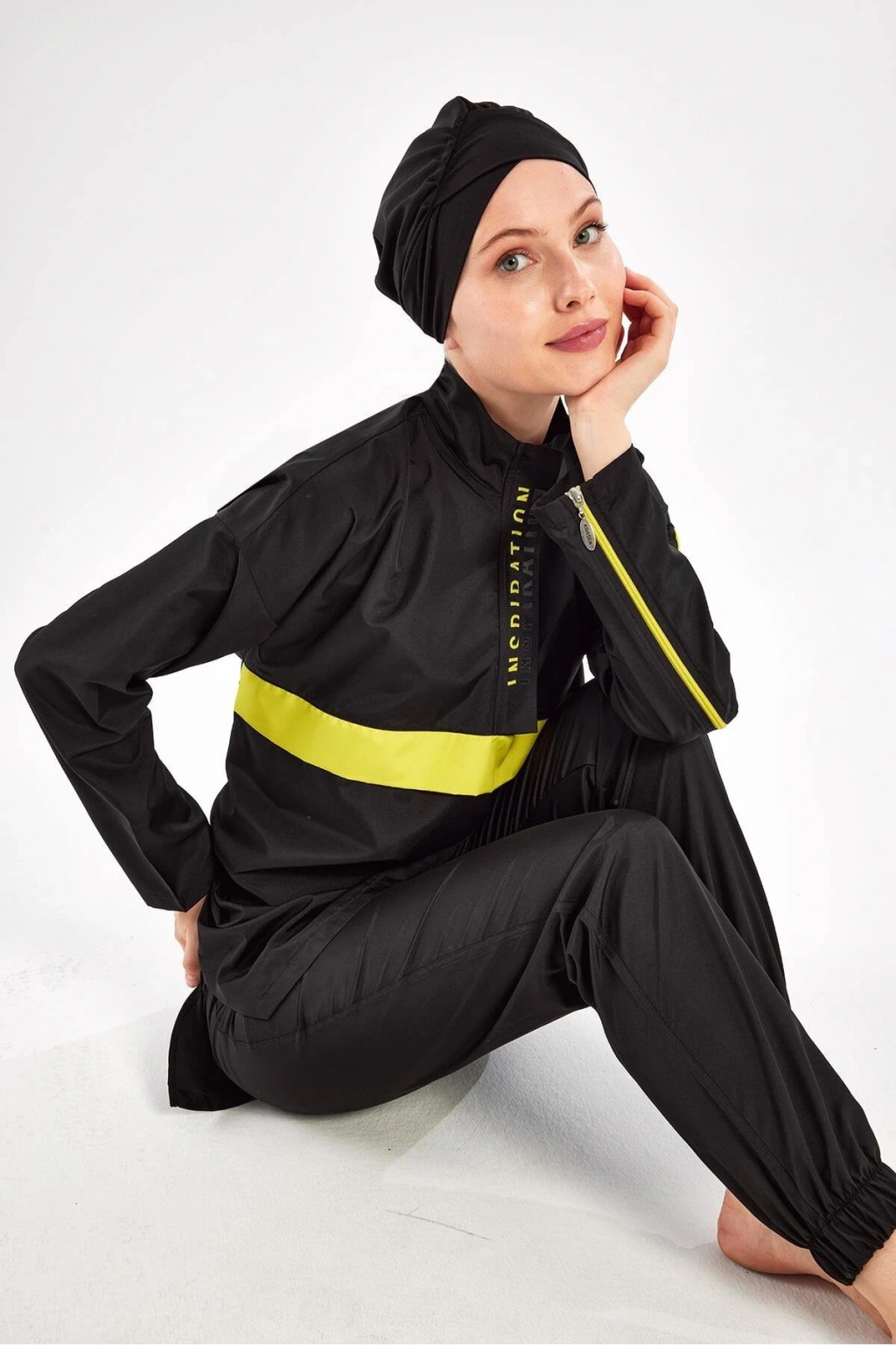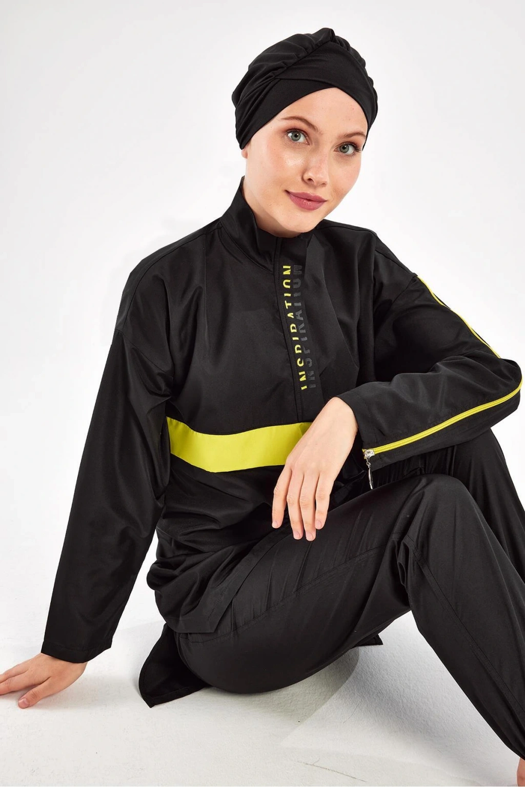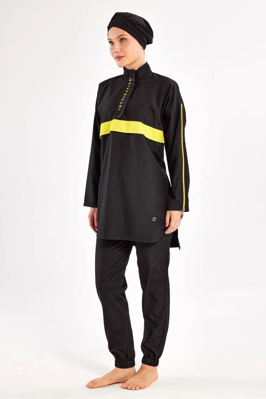 Adasea Siyah Kadın Henley Uzun Kollu Tesettür Mayo