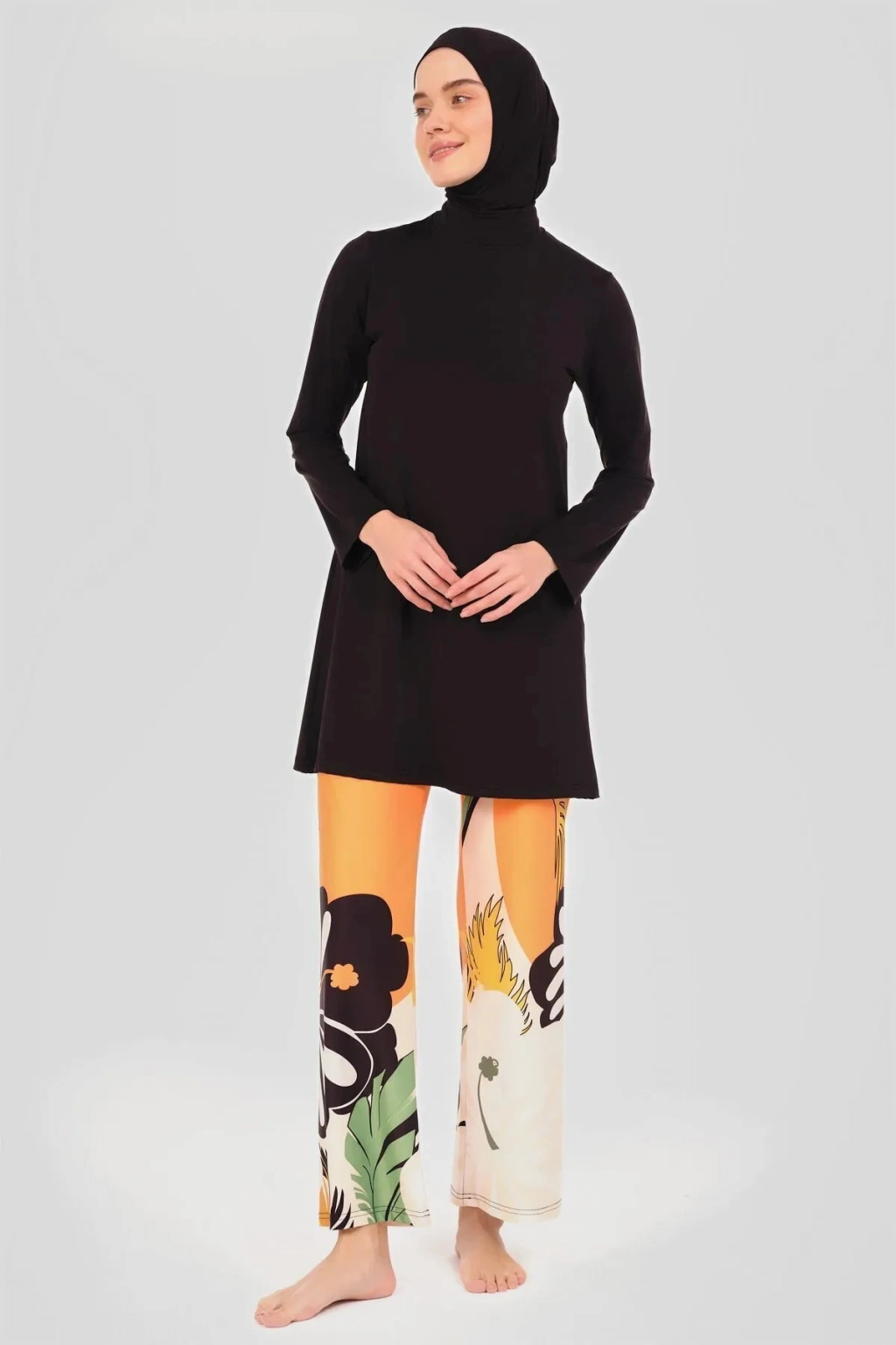 Rahat ve özgür hareket imkanı sunan regular kalıp tasarımıyla plajda ve havuz kenarında konforlu bir deneyim sağlar; Örme kumaş yapısı sayesinde esneklik ve dayanıklılık bir arada sunarak uzun süreli kullanım için idealdir; Soyut deseniyle modern ve şık bir görünüm kazandırırken, tesettür mayonuzun stilinizi yansıtmanızı sağlar; Plaj tekstil koleksiyonunun bir parçası olarak tasarlanmış olup, günlük kullanım için de uygundur; rahatlığı ve şıklığı bir arada sunar; Uzun kollu tasarımı ile güneşin zararlı ışınlarına karşı ekstra koruma sağlar ve serin tutar; Polyester karışımlı materyali hızlı kuruyan özellikte olup, suyun içinde ve dışında hızlıca kurur; böylece mayonuzun formunu korur; Lisanslı ürün olması, kalite ve güvenilirlik açısından sizi memnun edecek şekilde üretilmiştir;