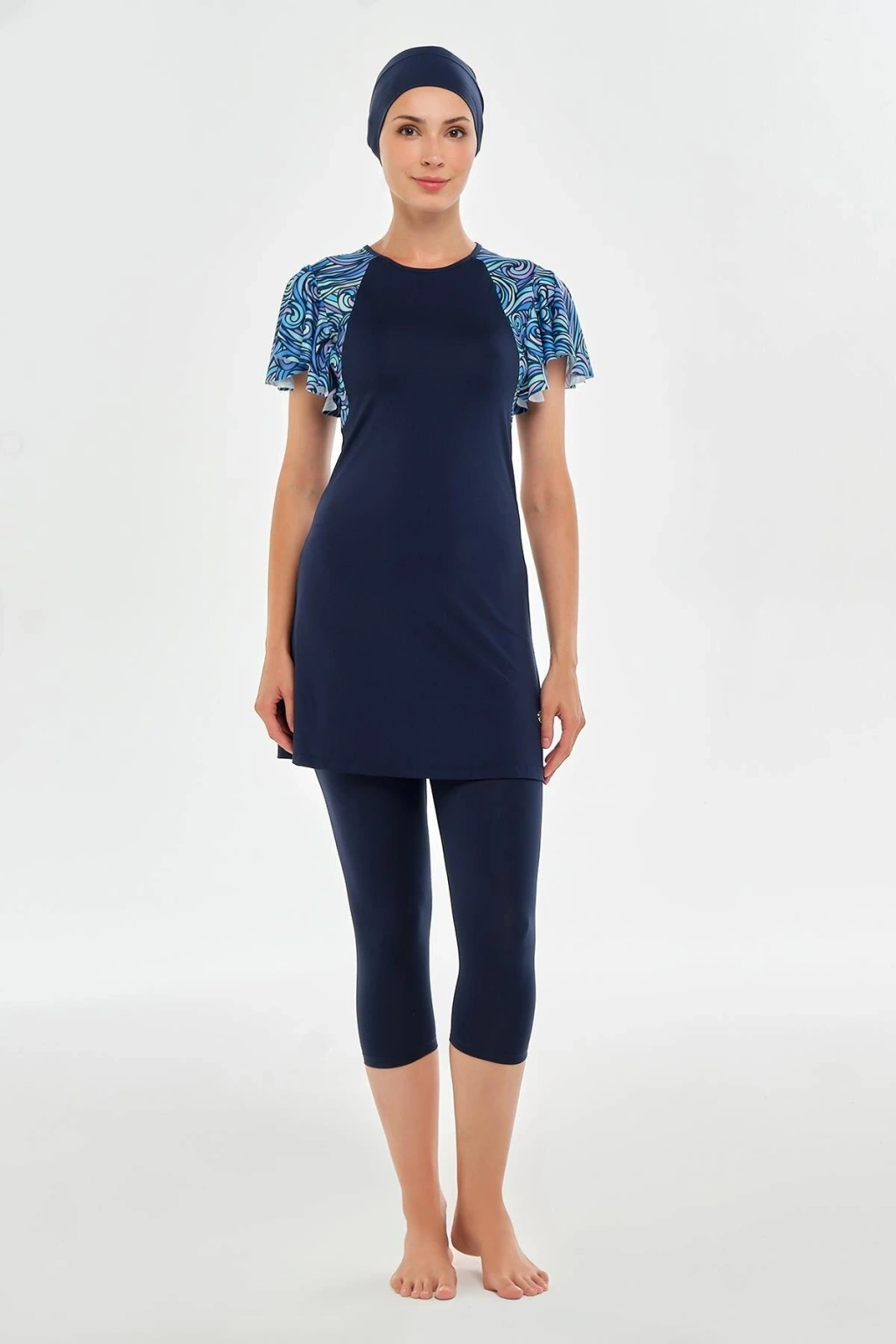 - Koyu lacivert renkteki bu tesettür mayo, deniz kenarı ve plajlarda şıklığınızı korumanızı sağlar.; - %100 poliamid materyalden üretilmiş olup, dayanıklılığı ve konforu bir arada sunar.; - Dokuma kumaş tipi sayesinde suyun içinde ve dışında rahat hareket etmenize olanak tanır.; - Beachwear ortamına uygun tasarımıyla yaz aylarının vazgeçilmez parçasıdır.; - Standart kol ve regular paça tipi ile modern bir görünüm kazandırırken, yuvarlak üst silueti feminen detaylar ekler.; - Bisiklet yaka tasarımı hem rahatlık hem de zarif bir duruş sunar.; - Kısa kol boyu ve maxi boy kesimiyle güneşin tadını çıkarmak için idealdir.; - Yetişkin yaş grubuna hitap eden bu ürün, herkes için uygundur.; - Sürdürülebilirlik detayının bulunmaması ise çevreye duyarlılık açısından dikkate alınması gereken bir noktadır.; - Mono kapama özelliği ile pratik kullanım sağlar ve atma kap detayıyla kolayca açılıp kapanabilir.; - Tesettür giyim koleksiyonuna ait olan bu mayo, zarifliğiyle ön plana çıkarken aynı zamanda günlük kullanım için de uygundur.; - Remsa Mayo tarafından ithal edilen bu ürün, kaliteli malzemelerle üretilmiş olup, HİSARİÇİ MAH.; Cadde/Sokak:15006 SK.; No:5 B Balıkesir/ Karesi'deki yetkili temsilciden destek alabilirsiniz.