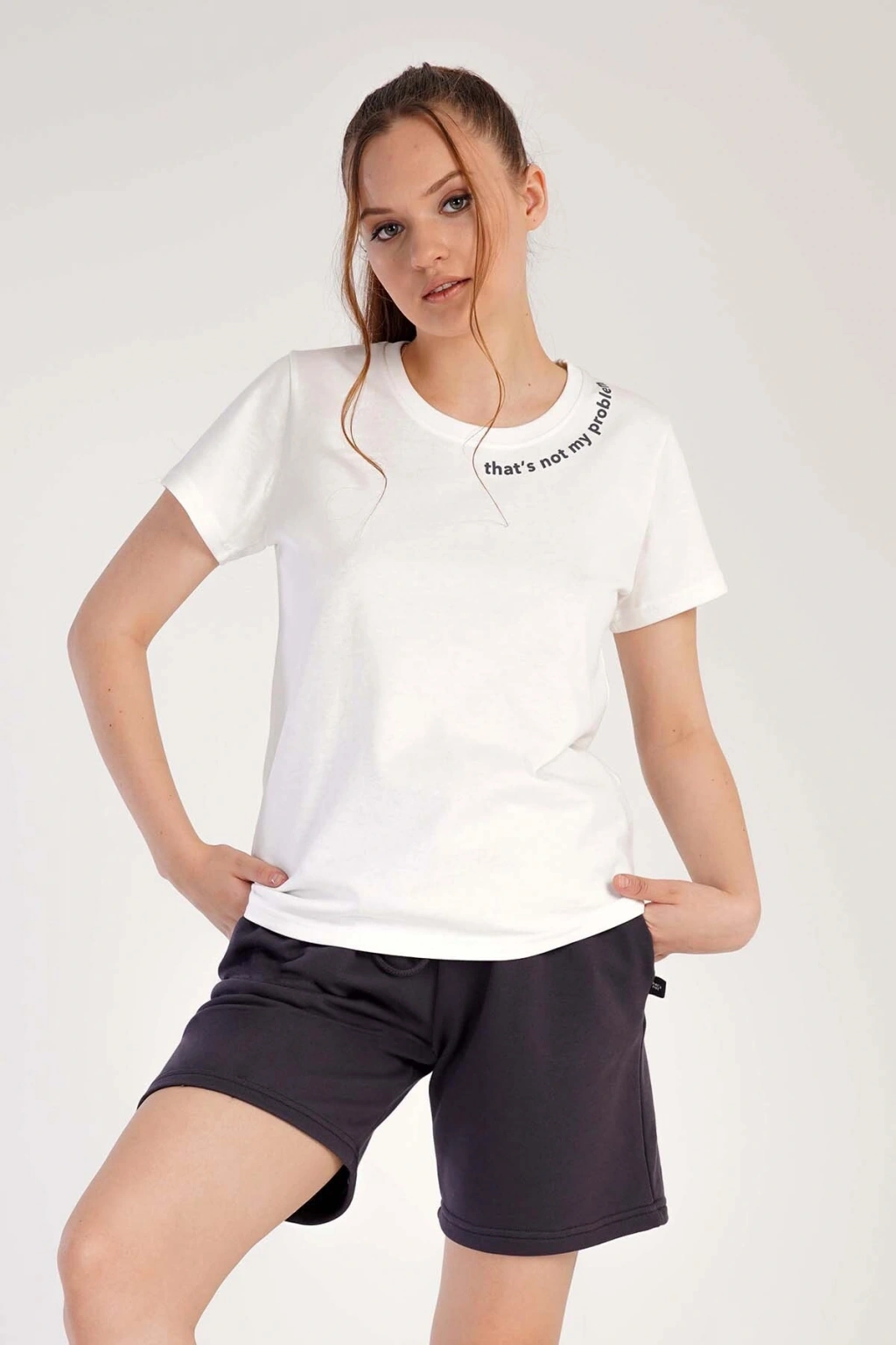 Üç iplik dokuma teknolojisiyle üretilmiş, yumuşak dokusuyla konfor sunan kadın pijama takımı.; Parça baskılı tasarımıyla dikkat çeken bu pijama takımı, şık ve modern bir görünüm sağlar.; Kısa kol tasarımı sayesinde serin tutan yapısıyla yaz aylarında idealdir.; Bisiklet yaka kesimi ile rahat bir giyim deneyimi yaşatırken, mottolu deseniyle de eğlenceli bir stil oluşturmanıza olanak tanır.; Kısa paça boyu sayesinde hareket özgürlüğünüzü kısıtlamaz ve rahatlıkla uyumanıza olanak tanır.;