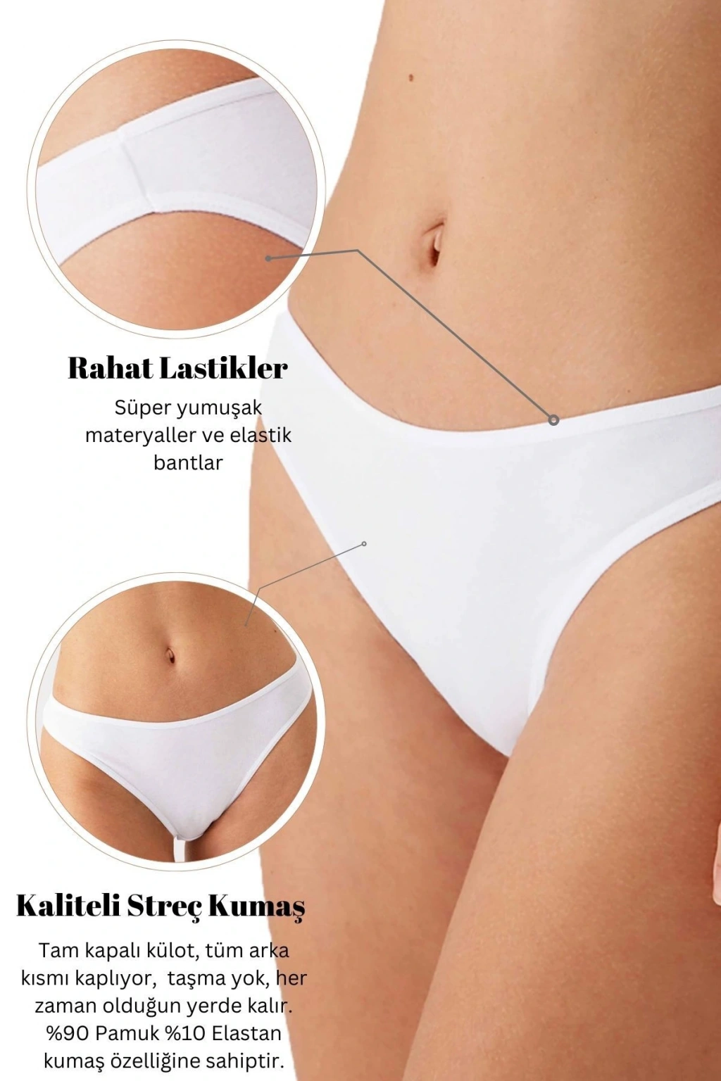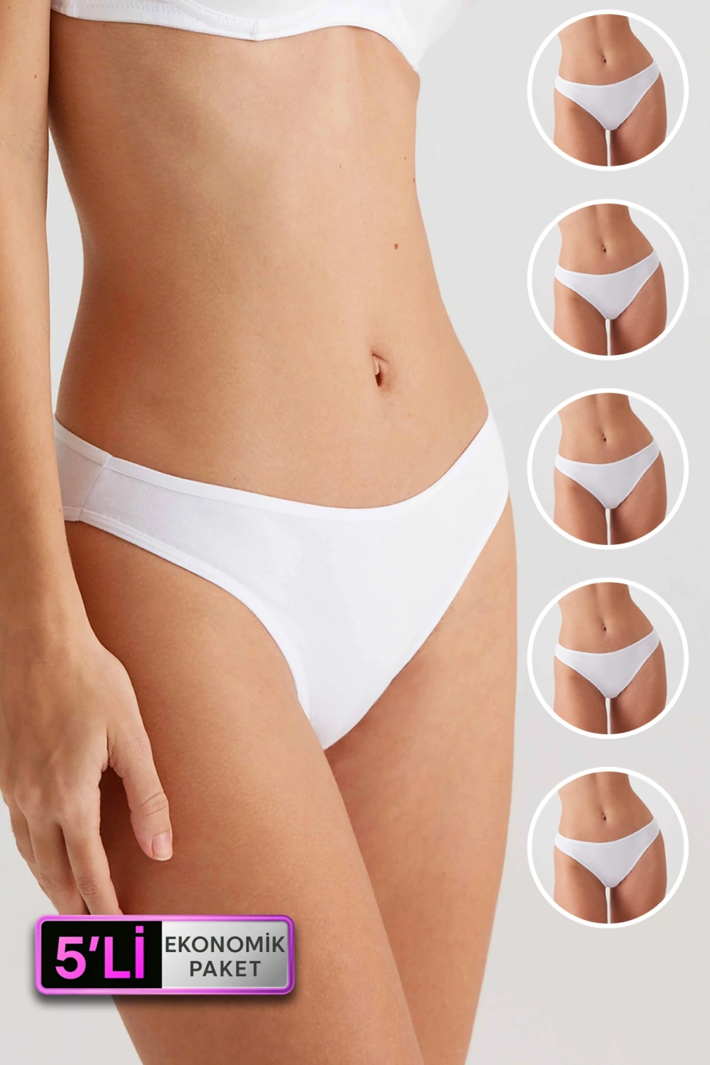 Kadın 5'li Ekonomik Paket Beyaz 2057 High Leg Classic Pamuklu Basic Külot
