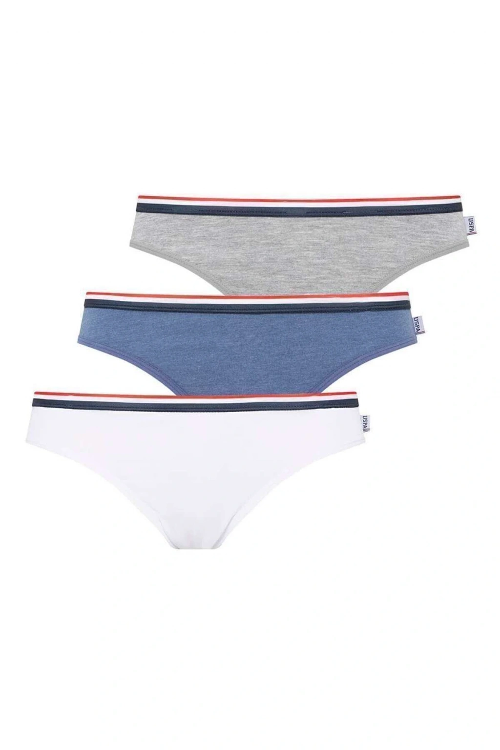 Kadın Beyaz - Mavi Melanj - Gri Melanj 3 Lü Slip 66271
