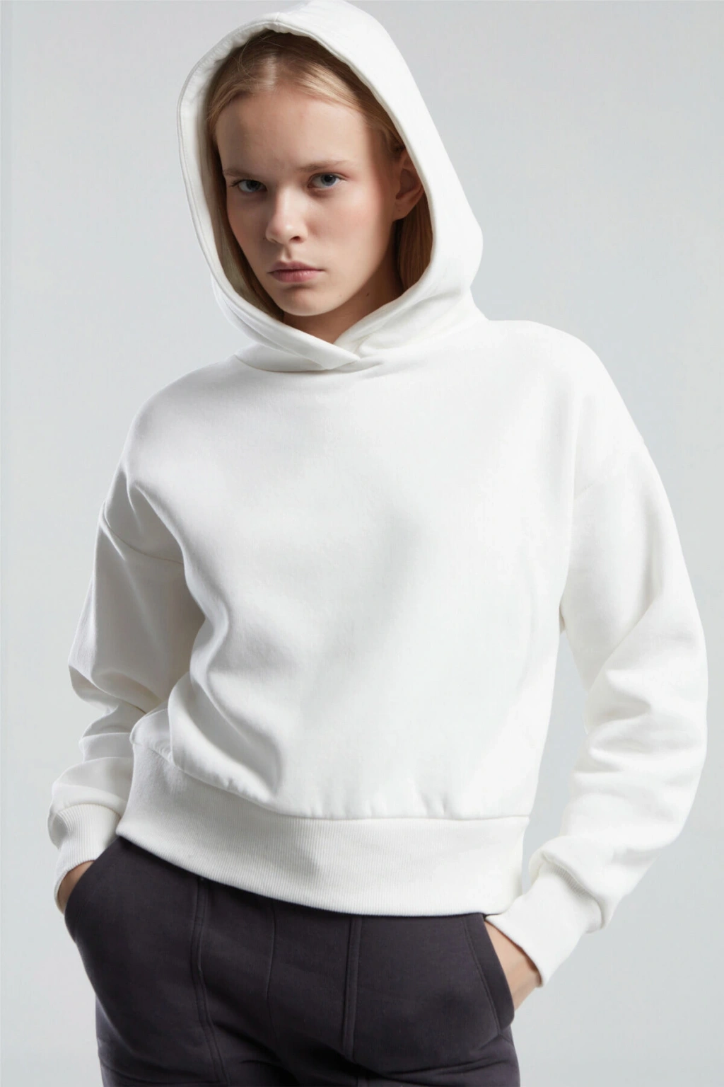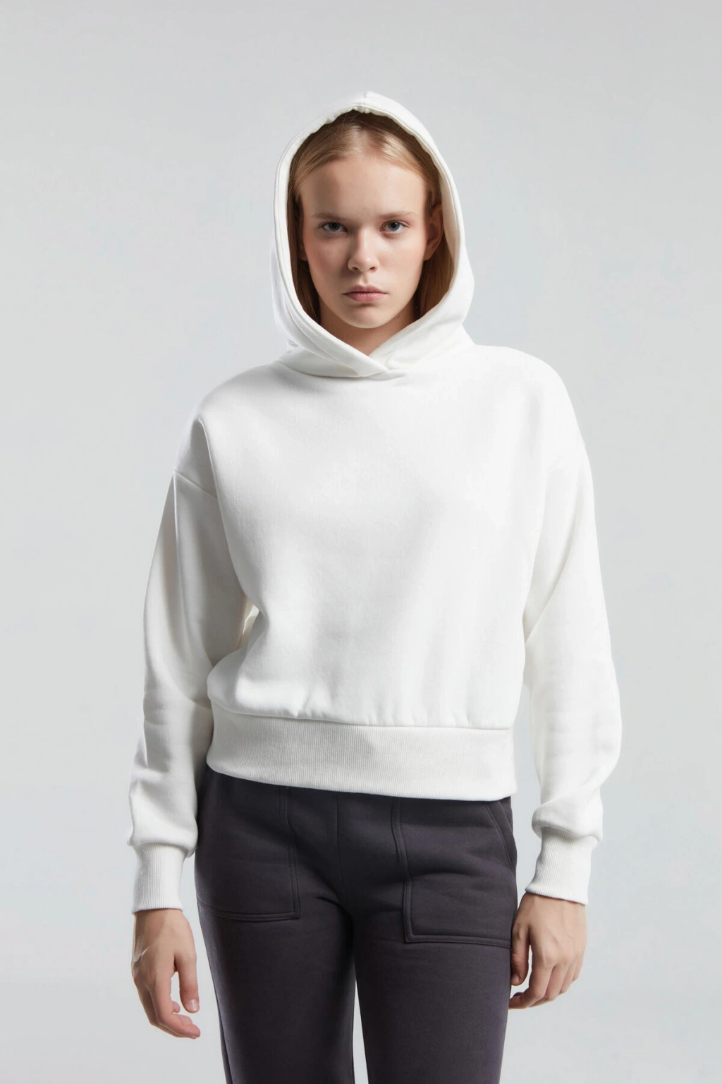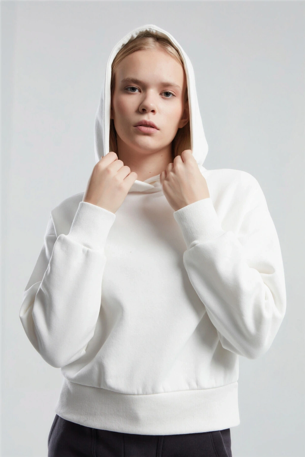 KADIN BASIC BİSİKLET YAKA UZUN KOL SWEATSHIRT Whıte