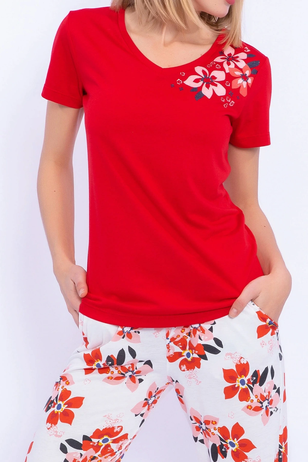 Hibiskusun iyileştirici etkisini tüm gün ve gece boyunca üzerinde taşımaya ne dersin? Kadim zamanlardan beri şifalandırıcı gücüne sık sık başvurulan hibiskus çiçeğininin enfes görüntüsüne yer verdiğimiz Arnetta Hibiskus Çiçek Desenli Kırmızı Slim Fit Kadın Pijama Takımımız ile içindeki gerçek gücü keşfetmeye hazır ol! Alt ve üst parçasında kullandığımız %50 polyester ve %50 viskon içeriğine sahip süprem kumaş, yazın yükselen hava sıcaklığında bile terlemeni engelleyerek rahat bir uykuyla kucaklaşmanı sağlar. ; Hibiskus çiçeği motiflerine alt ve üst tasarımında yer verdiğimiz bu takım yaza en çok yakışan, canlandırıcı etkili kırmızı renkle taçlandırıldı. ; Tutkuyu, aşkı ve sevgiyi tüm bedeninde hissetmeni sağlayacak kırmızıyla gün içerisinde veya uyku zamanlarında bile kendini çekici kılabilirsin. ; V yakalı düz kırmızı tişörtün yakasına eklediğimiz hibiskus çiçeği ve alt parçasındaki desenlerin uyumuyla mest olacağın takımımız, slim fit bir kesime sahip. ; Her yaştan kadına hitap edecek Arnetta takımımız yeniden doğuşu temsil eden yaz çiçekleri gibi ruhuna ve bedenine canlılık ve ışıltı katacak. ; Ürün Kodu: AR1894-S-V1 Kumaş Detay: Üst : %50 Viskon %50 Polyester (Süprem)Alt : %50 Viskon%50 Polyester (Süprem) Sezon : İlkbahar-Yaz Marka: Arnetta Renk: Kırmızı Cinsiyet:Kadın ConnectProf © tarafından yayınlanmıştır.;